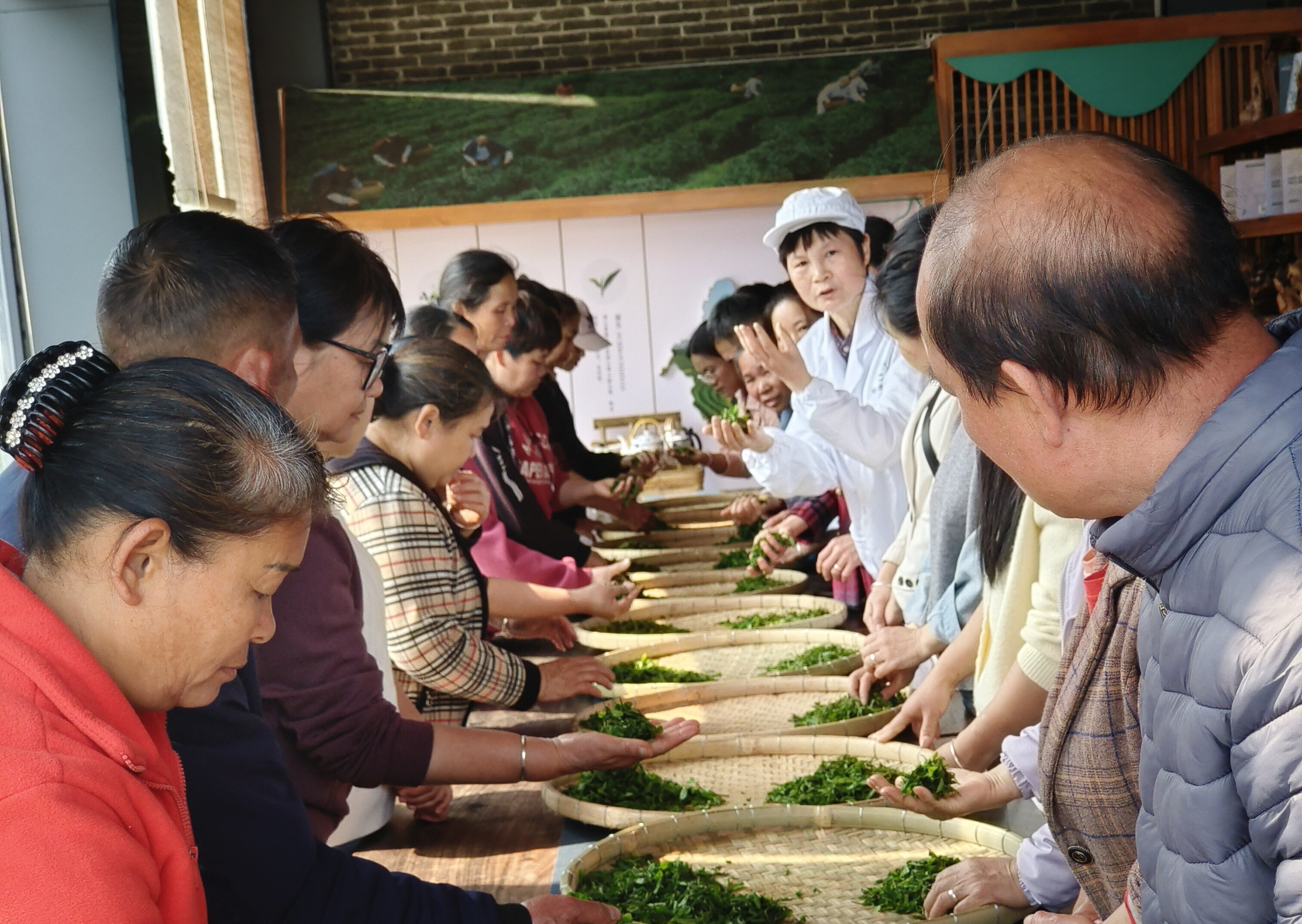 茶叶审评是评判茶叶品质的核心手段,能全面客观地反映产品品质,对茶叶生产起着指导和改进作用。通过外观审评,学员们直观地观察到自己的加工产品在条索紧结度、色泽均匀度等方面的不足;绿茶滋味审评环节则让学员深刻体会到杀青温度对茶汤鲜爽度的影响;在红茶香气审评中,加工团队成员指导学员辨别了发酵不足带来的青草气和发酵过度产生的酸馊味。同时,针对审评发现的问题,逐一给出改进建议,如调整萎凋时间、控制发酵温度、把握杀青温度等,让学员们找到提升加工水平的具体路径。