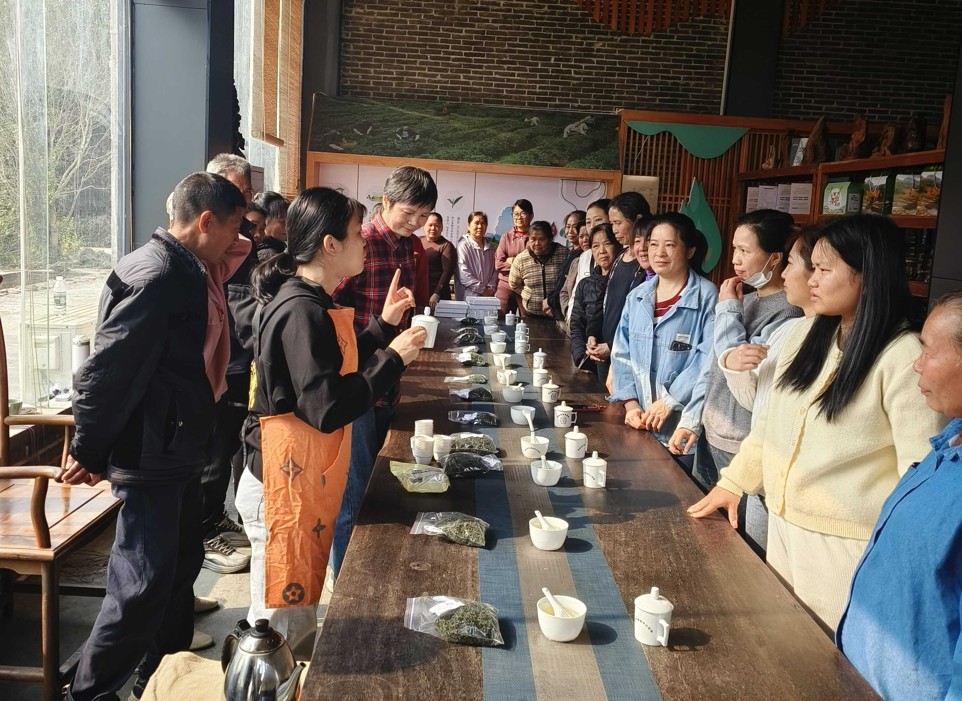 在为期两天的培训中,加工团队成员对学员们在茶叶加工实际操作中遇到的问题进行了详尽的解答,并带领学员采用五因子审评法,从外形、香气、汤色、滋味、叶底五个维度,将自己的实操作品与优质西山红绿茶产品进行系统比对。