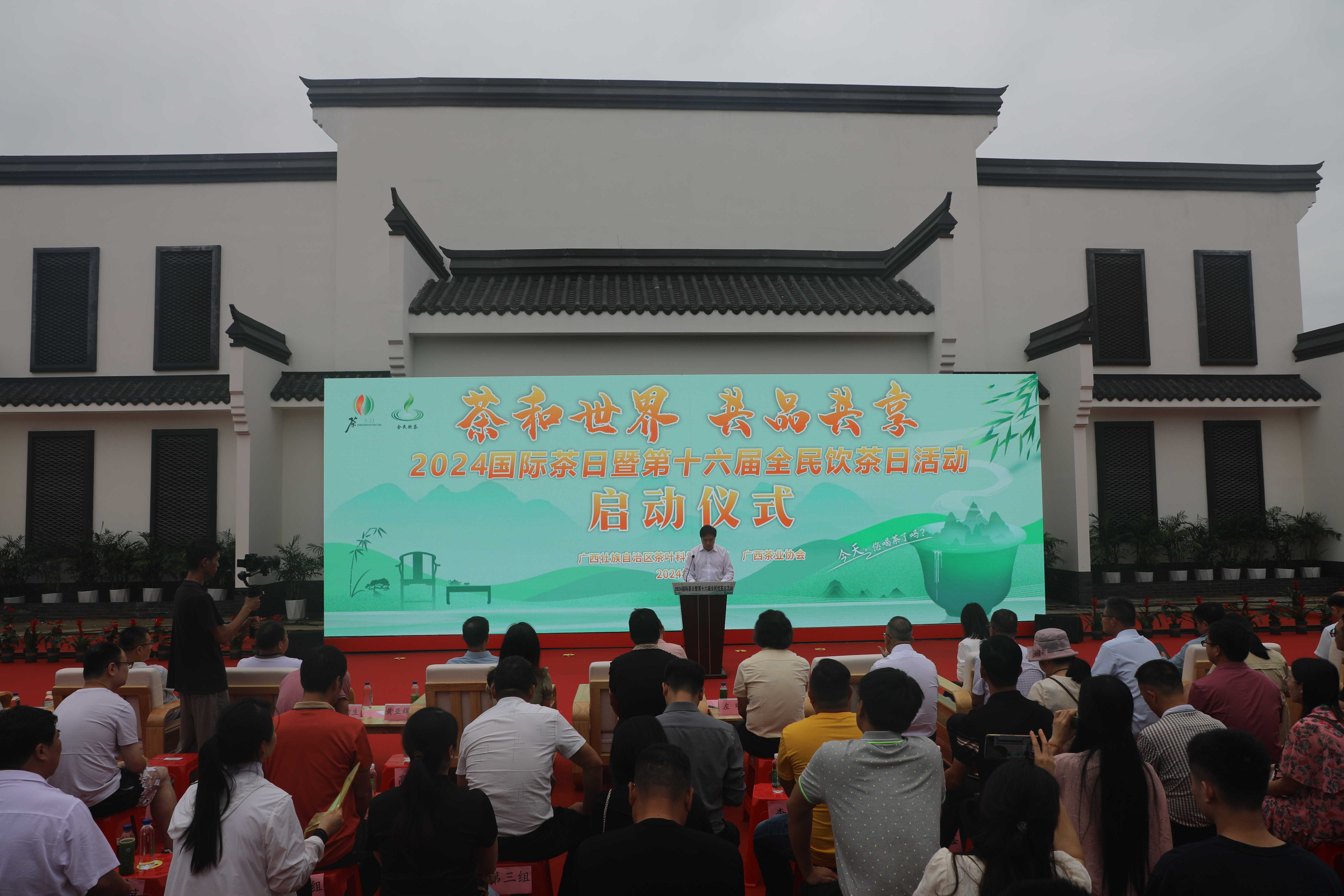 2024年6月12日,由广西壮族自治区茶叶科学研究所、广西茶叶协会共同承办的“茶和世界,共品共享——2024国际茶日暨第十六届全民饮茶日活动”在广西茶科所科普培训馆前举行了启动仪式,广西成人直播 厅二级巡视员徐世宏、广西成人直播 厅科技处处长左明、中国农科院茶叶研究所陈总懋院士团队周利研究员、华南农业大学黄亚辉教授等领导和专家参加了此次仪式。