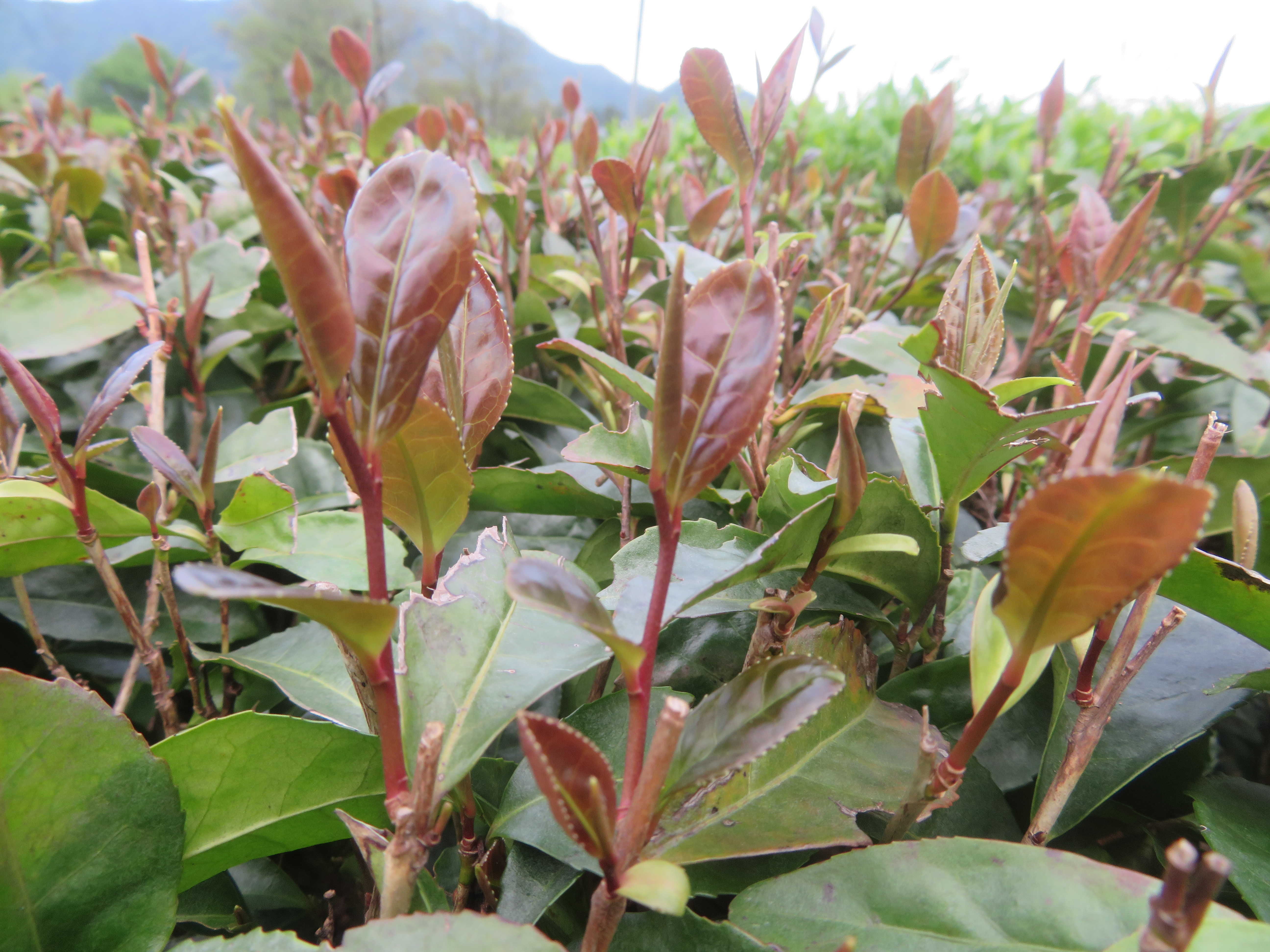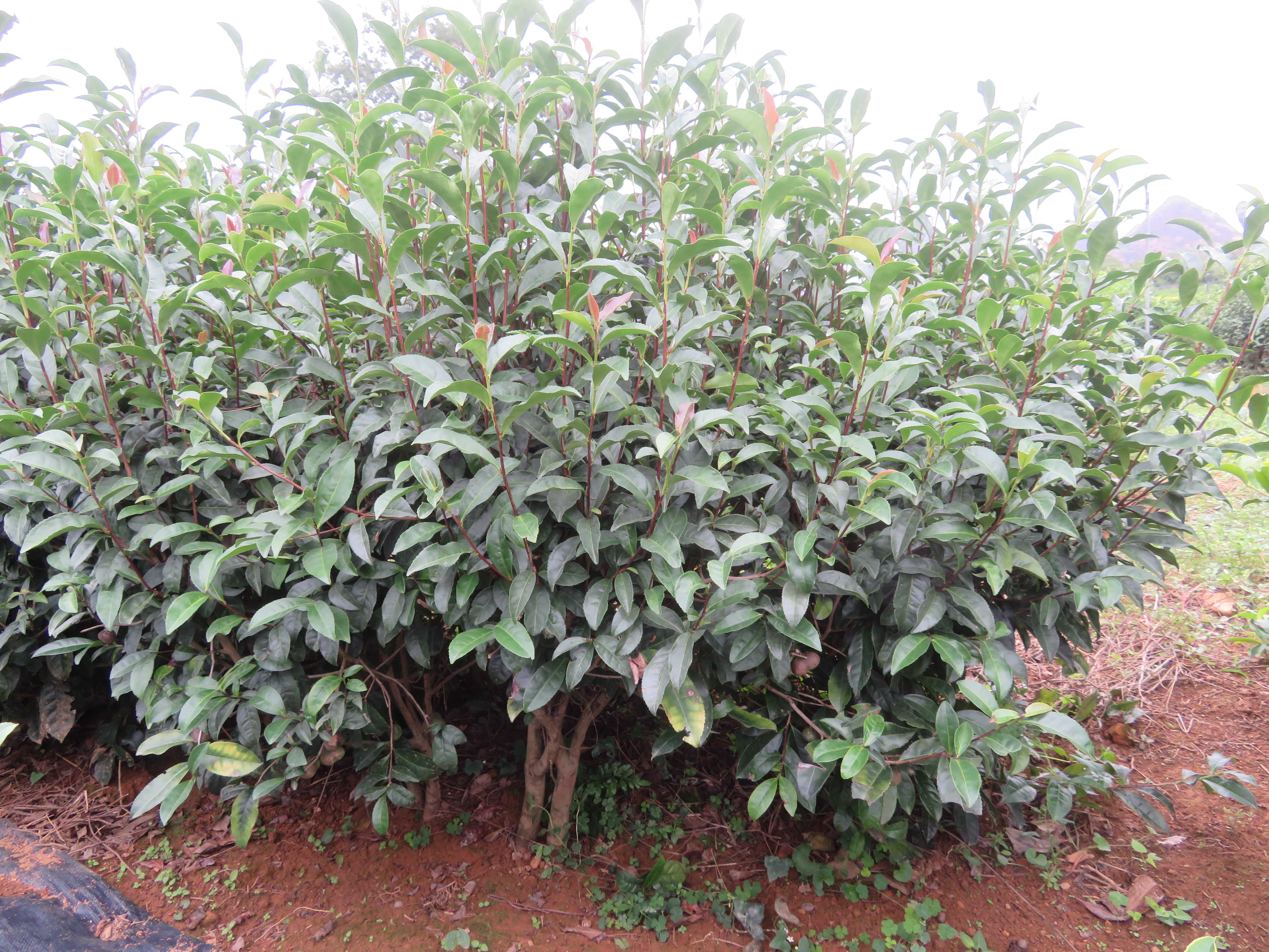 主要特征:灌木,树姿开张,分枝密、中小叶类、中生种。一芽三叶长6.9cm,百芽重56.8g。叶片长7.2cm,叶片宽3.2cm,叶片上斜状着生,叶形椭圆形,叶面平稍隆起,叶缘平,叶身稍内折,叶质中,嫩芽叶紫红色,成熟叶绿色,茸毛少,侧脉6-7对,叶齿浅,叶基楔形,叶尖渐尖。始花期10月中旬,盛花期11月上旬,花冠直径3.7 cm,白色花瓣6 瓣,花柱长度1.2cm,花柱3 裂,子房有茸毛,雌雄高比(低),结实能力中等。