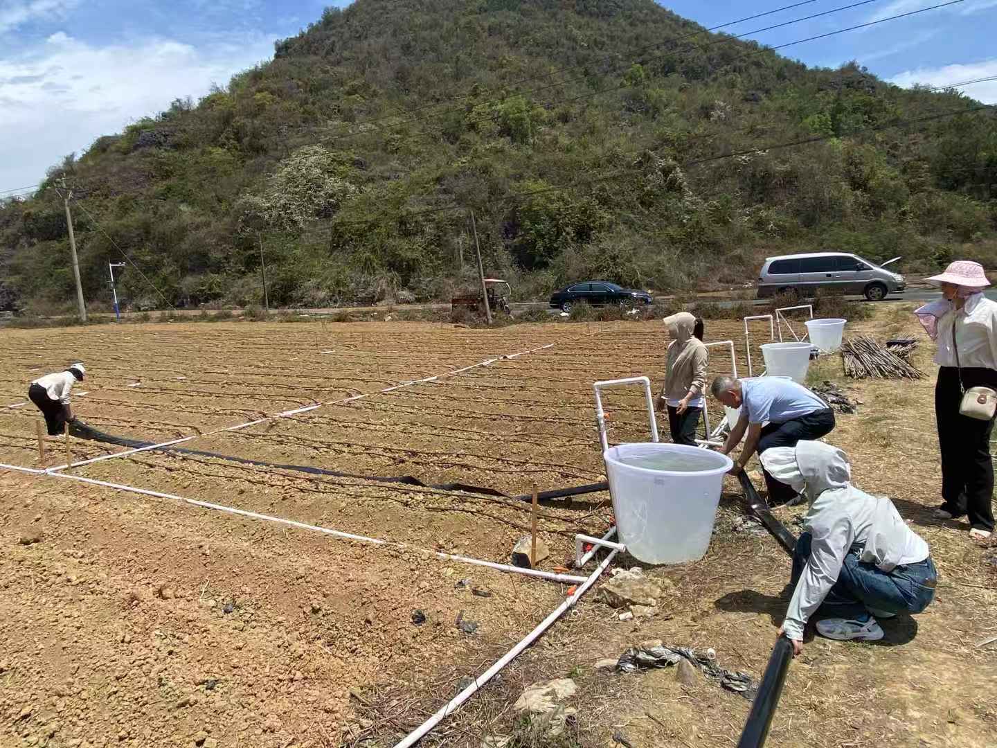 去年冬季以来,百色市降雨持续偏少,全市平均降雨量比常年同期偏少7成,为1965年以来同期最少。据百色市4月14日气象监测显示,目前百色市大部分县(市、区)发生了重度以上气象干旱,其中右江区、田阳区、凌云县、乐业县、田林县、西林县的大部分地区达到特旱等级,当前全市旱情仍在持续,全市目前已有12个县(区)135个乡(镇、街道)3473个村(屯)受旱,主要涉及玉米、甘蔗、水稻、大豆等作物。工作队深入旱区实地勘察了灾情,指导各地制定作物分类抗旱技术方案,及时检修抽水泵、机房,备好打井机、移动灌溉、柴油等设备或物资,通过蓄水调水,清淤补漏,全力保障农田灌溉和农作物生产用水需求,助力抗旱保春耕。
