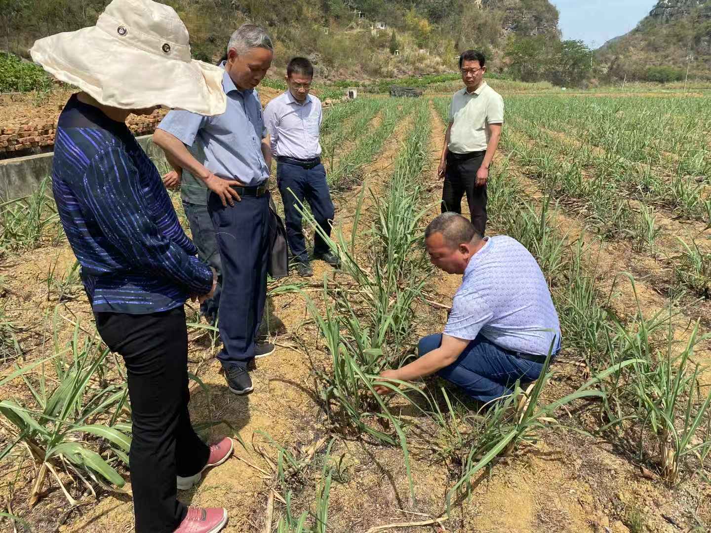 指导组在平果市紫塘村查看受旱甘蔗