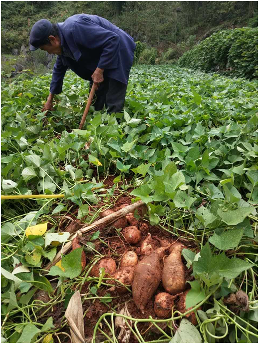 大化白玉薯经精心栽培已有60多年历史,盛产于大化生态优越的高山深弄,当地布努瑶同胞有一个古老的传说:很久以前的农历5月29日,始祖娘密洛陀外出为儿女们觅食,因饥饿与劳累,晕倒在地。善良的薯仙一心救人,忍痛割下身上白嫩嫩的肉以喂食,密洛陀吃后元气倍增,身体充满强大的力量。密洛陀叩首拜谢薯仙,抬头瞬间,看见薯仙右手拔出发簪轻轻一划株嫩绿的薯苗出现在密洛陀面前,薯仙说:“带回家种吧,它可以养活你的儿女”。密洛陀心怀感激将薯苗带回家精心地在山地上种植。不久,薯苗在地下结出心白如玉的果实一一白玉薯,作为主食养育着一代代布努瑶儿女。为了纪念这个难忘的日子,布努瑶同胞每年在农历5月29日这一天隆重举行“祝著节”。该白玉薯在板升、七百弄、雅龙等地种植较多。”