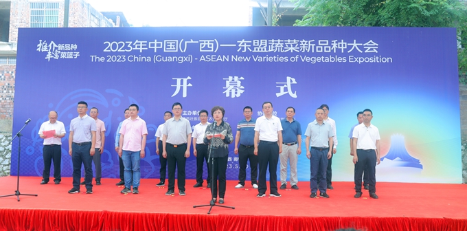 5月20日,2023年中国(广西)—东盟蔬菜新品种大会在南宁开幕。自治区成人直播 厅二级巡视员翁丽平出席并讲话。
