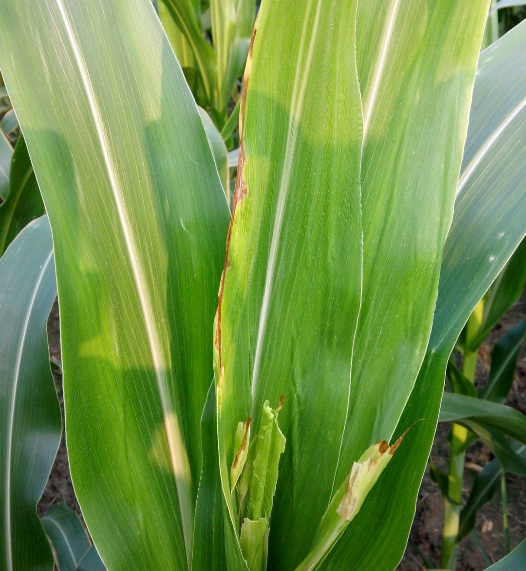 8月玉米很容易出现顶腐病,主要是细菌性顶腐病。顶腐病一般发生在玉米出穗前,在玉米10片叶—15片叶之间开始表现症状。