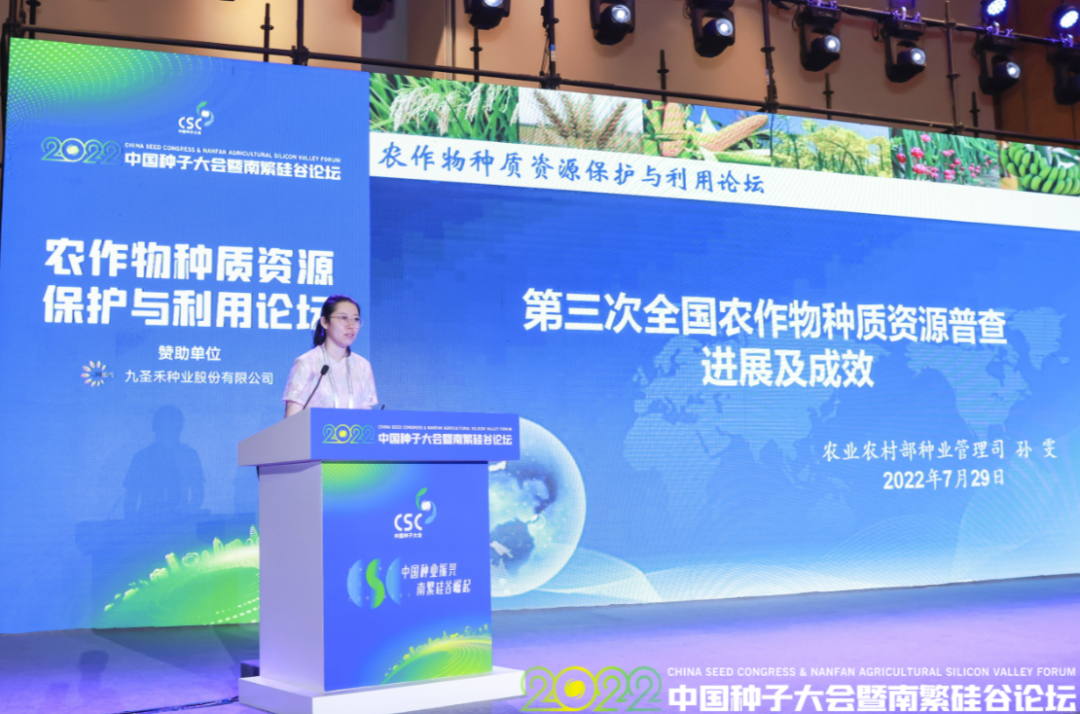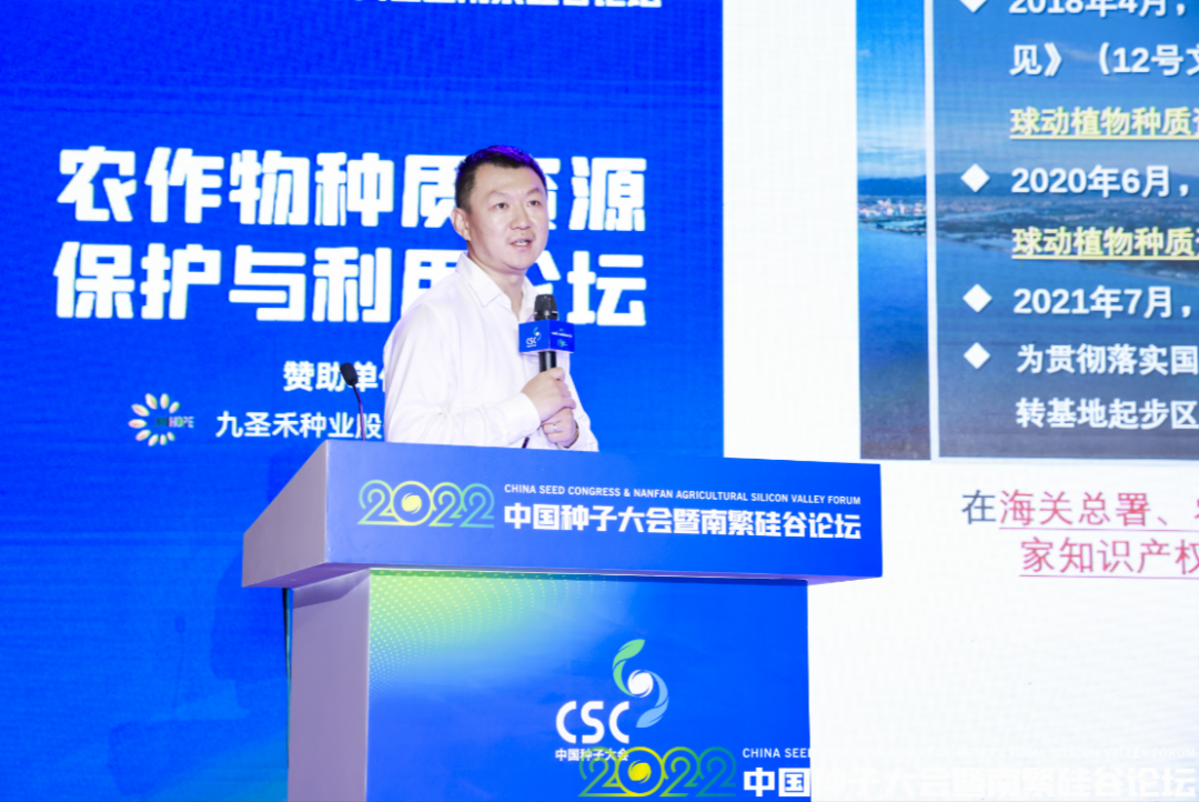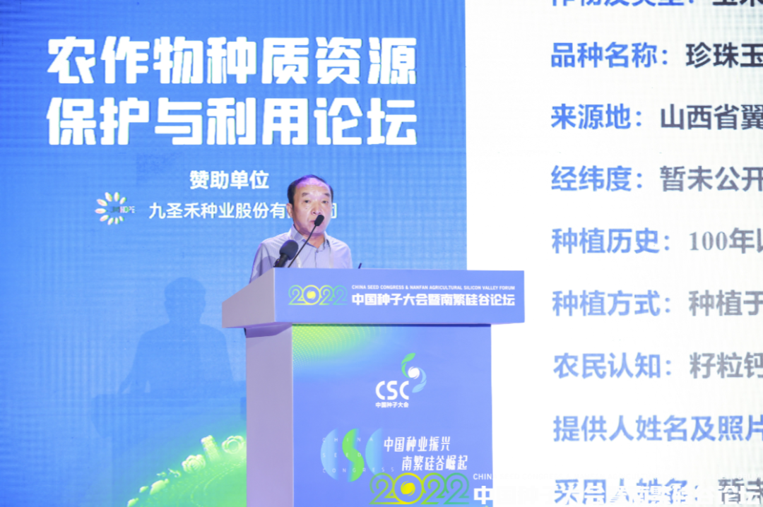 日前,在2022中国种子大会暨南繁硅谷论坛农作物种质资源保护与利用分论坛上,11位专家就我国种质资源收集保存、鉴定利用情况和国际资源管理条例进行了深度报告,为在场的参会者带来了一场关于种质资源的知识盛宴。中国种子协会顾问组长陶承光和中国种子贸易协会秘书长田伟红主持本次论坛,论坛由九圣禾种业股份有限公司独家赞助。