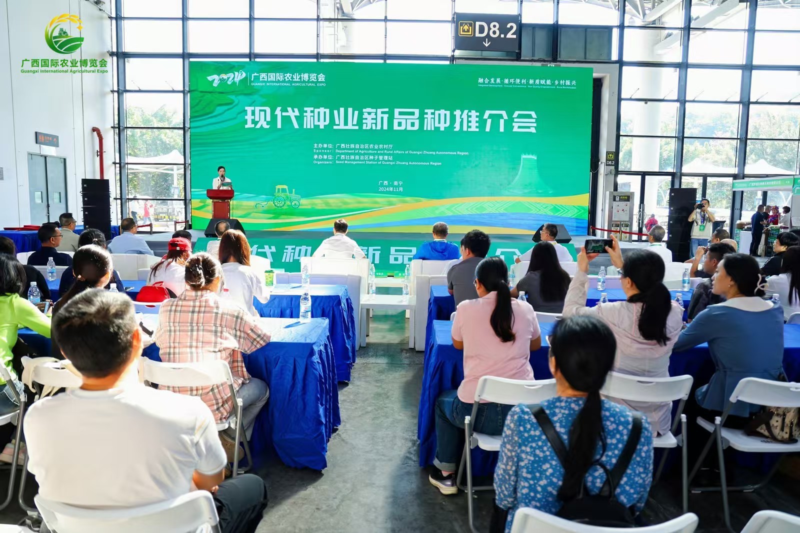 11月8日,2024年广西国际农业博览会现代种业新品种推介会在南宁举办。自治区成人直播 厅二级巡视员李豪兵、中国种子协会副会长邓光联出席推介会。