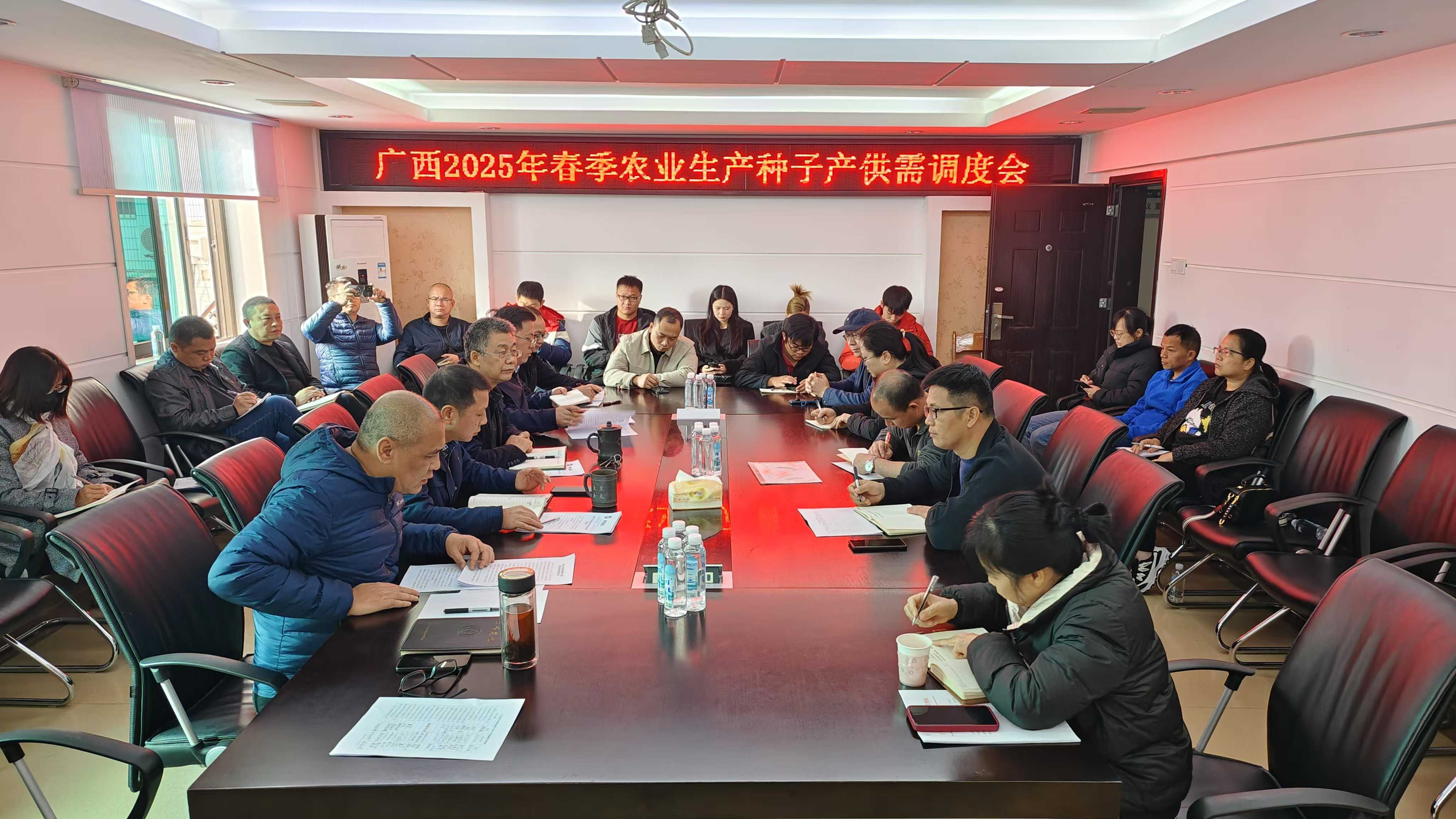 2024年12月19日,自治区种子管理站在南宁召开广西2025年春季农业生产种子产供需调度会。区内外20多家粮食作物种子生产经营企业代表参加会议。
