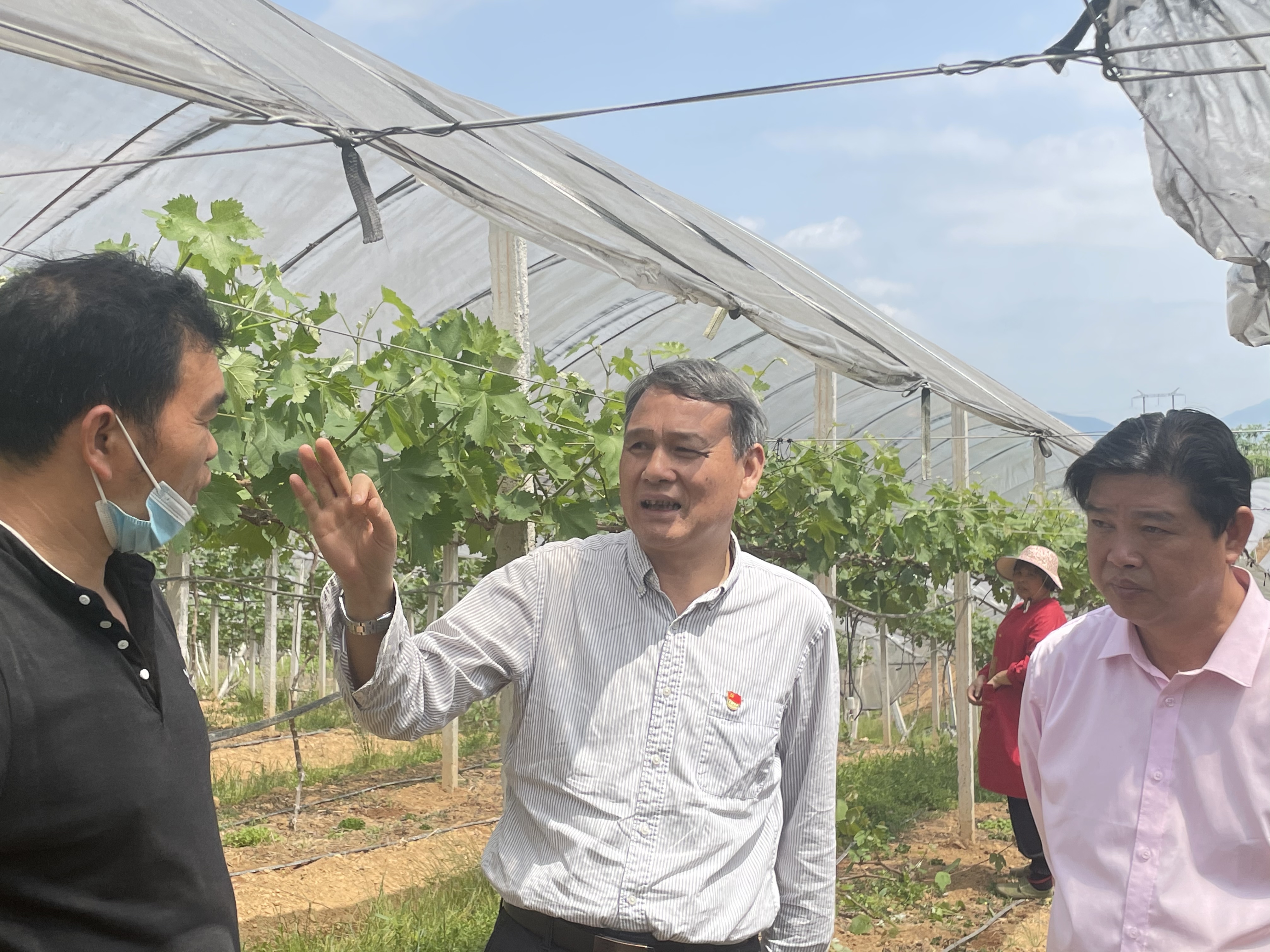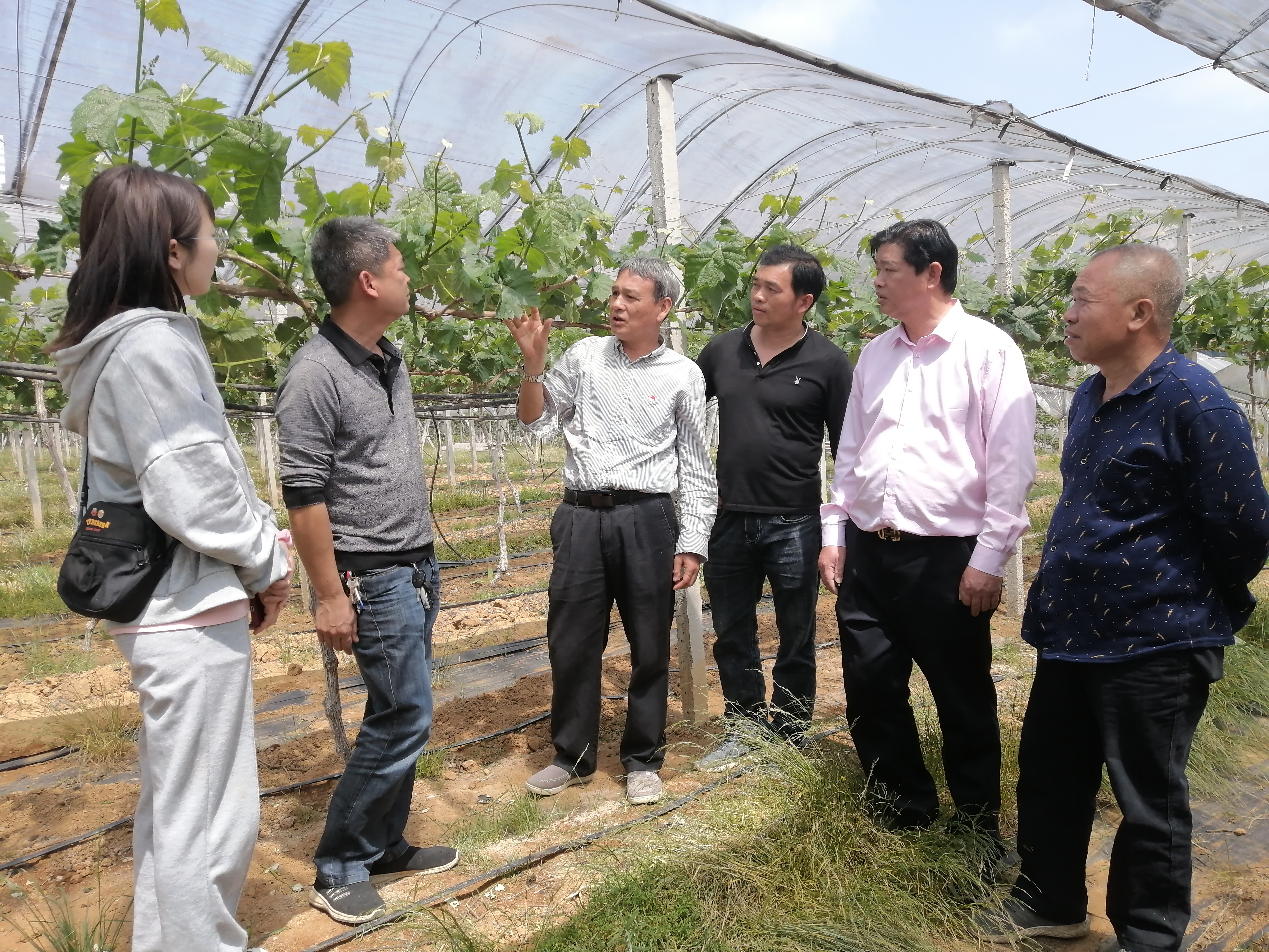 2022年4月14日,中共广西特色作物研究院科研支部党员陈爱军、梁晓文与兴安县成人直播 局水果站及镇农业技术服务中心技术人员一同深入兴安县溶江镇、严关镇,开展葡萄产业调研和技术指导。