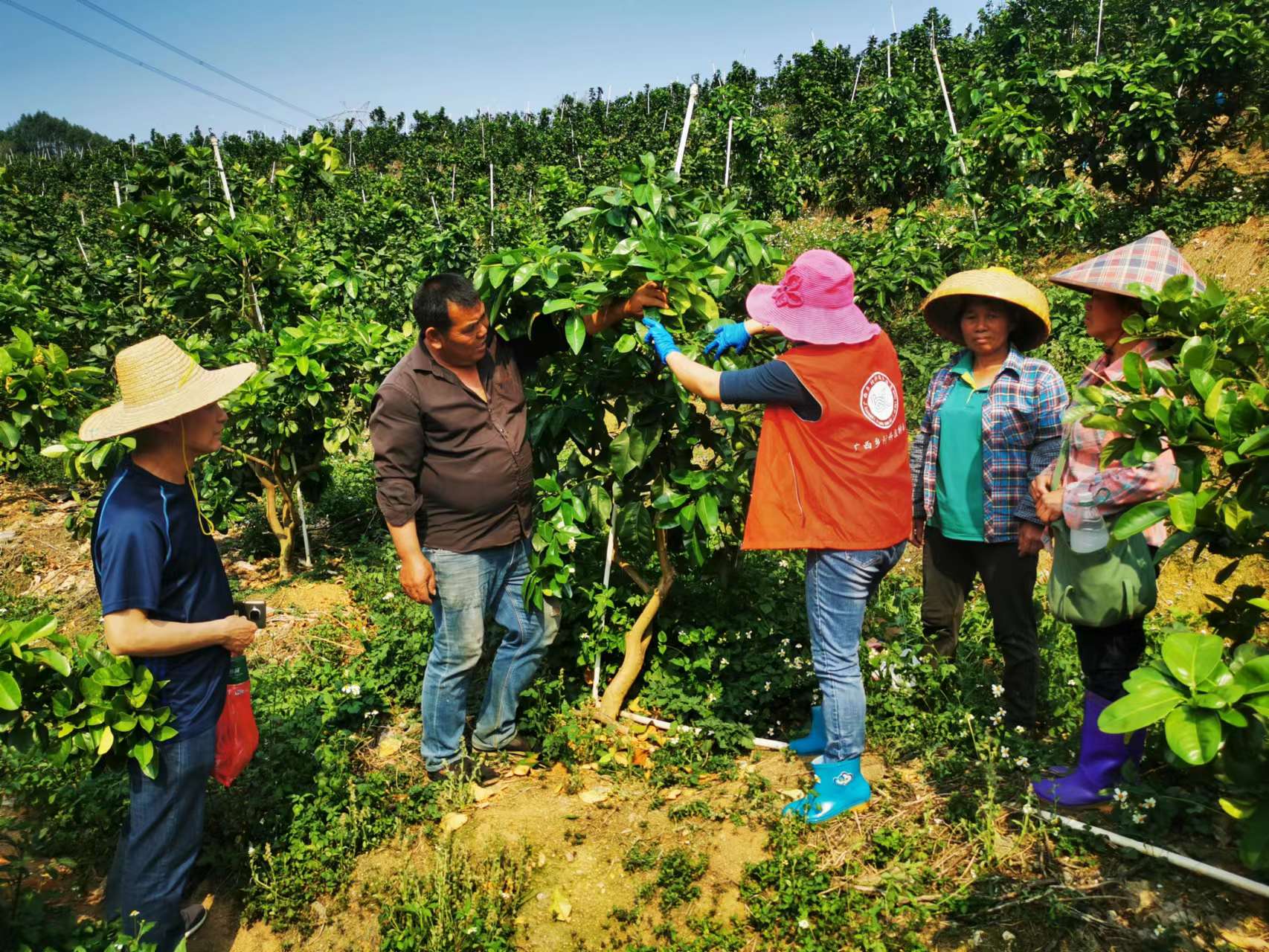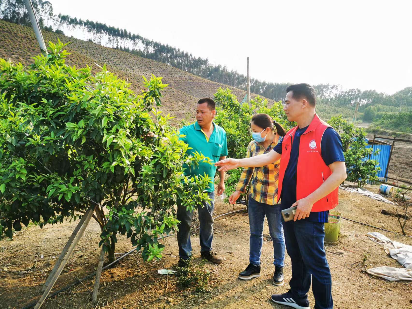 2022年4月10-11日,广西特色作物研究院科研支部派出柑橘栽培专家、科技特派员梅正敏高级农艺师、张社南高级农艺师前往来宾市武宣县开展柑橘春季生产技术指导。