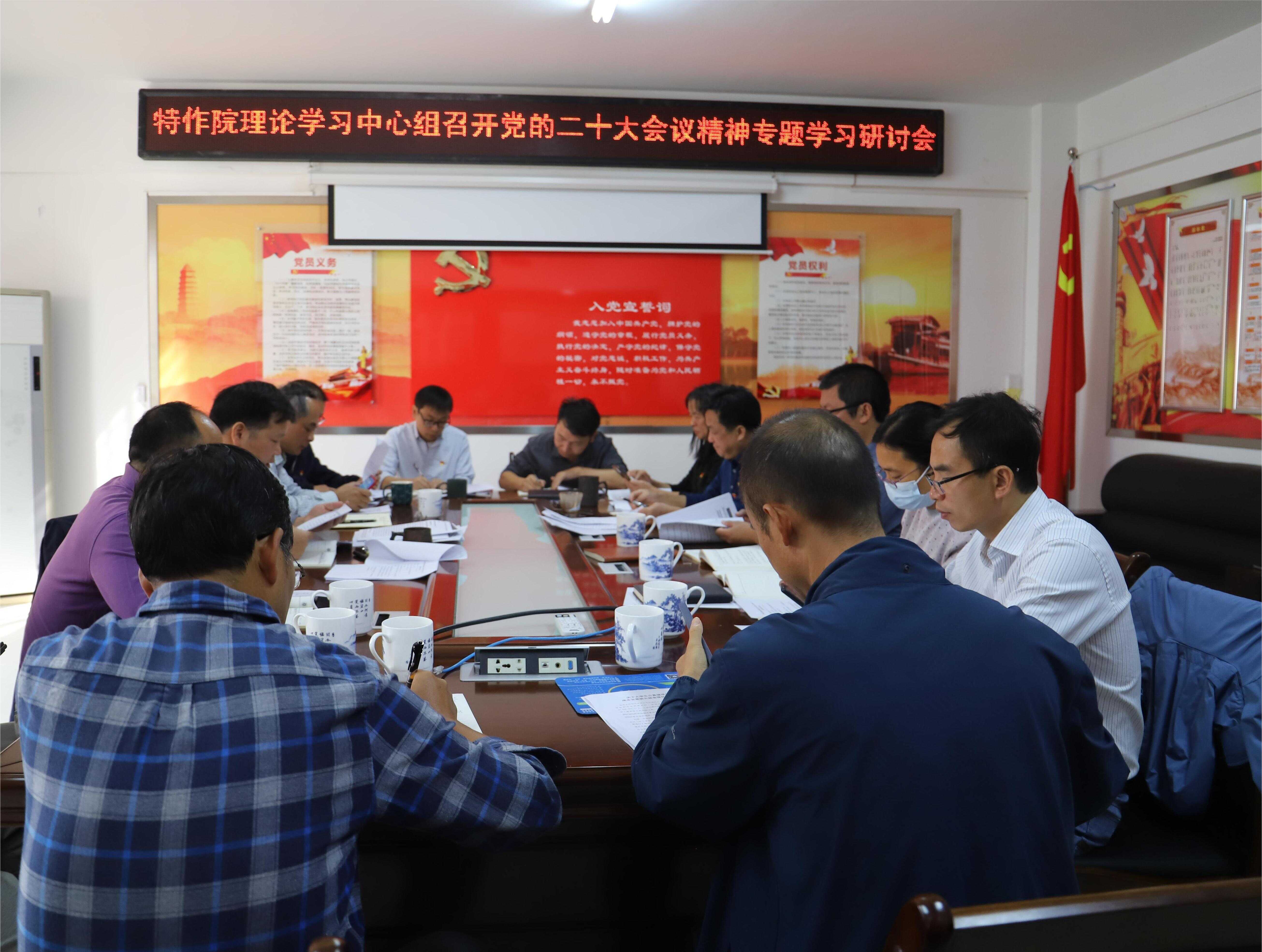 10月28日上午,广西特色作物研究院召开理论学习中心组(扩大)会,专题学习党的二十大报告和习近平同志参加党的二十大广西代表团讨论时的重要讲话精神,交流学习心得。广西特色作物研究院书记郭小强主持会议并讲话。