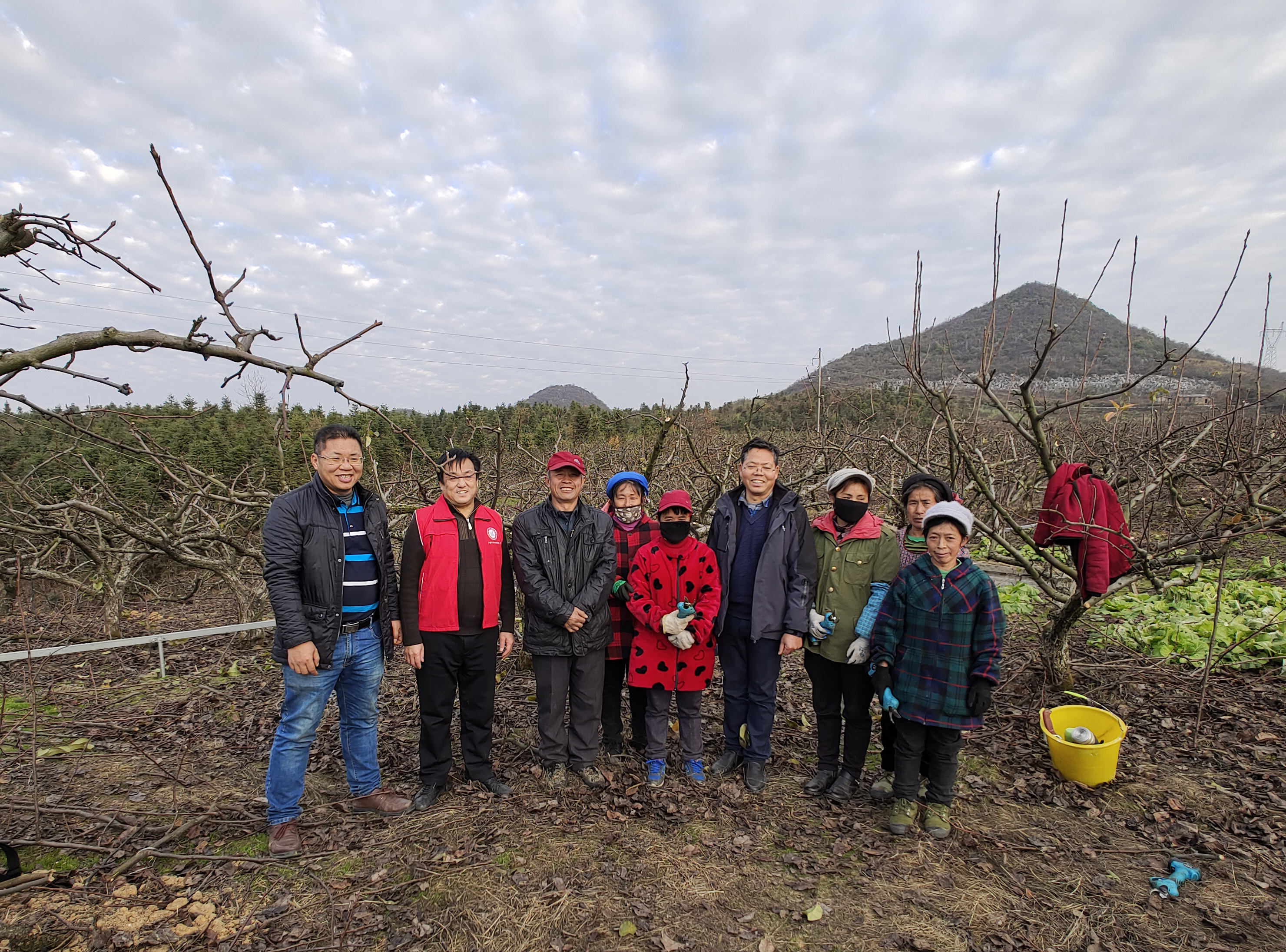 近年来,桂林市全州县东山瑶族乡大力扶持新型经营主体,大力发展梨等适合高山气候的特色种植产业,目前种植翠冠梨和清香梨近500亩,形成了春季赏花带动乡村游、初夏收果的助农增收模式,2022年梨园收入150万余元。由于经济效益好,果农积极性高涨,利用当前晴暧天气,抓紧进行修剪和清园工作。应果农邀请,广西特色作物研究院乡村科技特派员团队现场进行了修剪、冬季清园和病虫害综合防控等技术指导,深受果农欢迎。