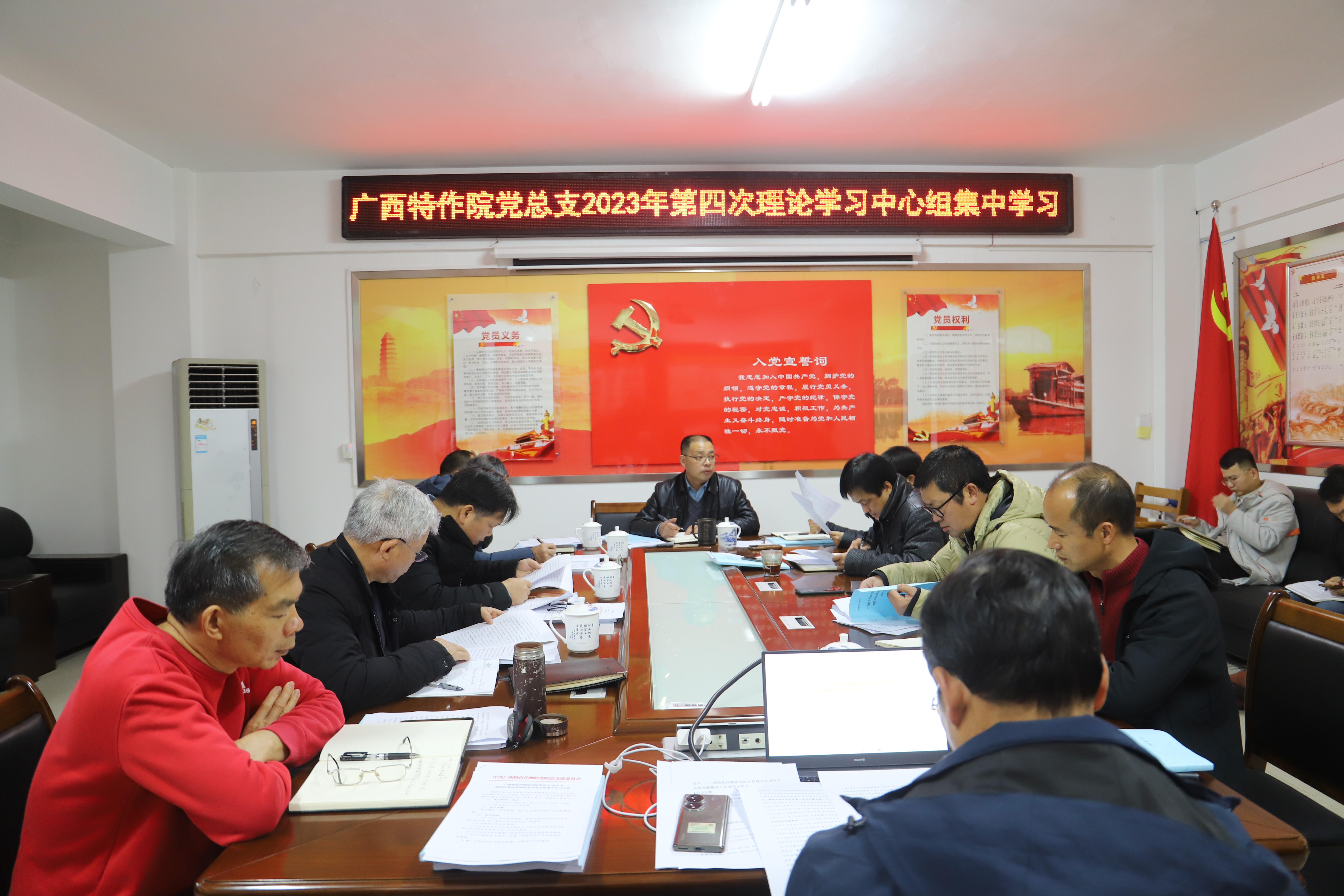 广西特色作物研究院党总支委员、处级以上干部及各部门负责人参加学习会。