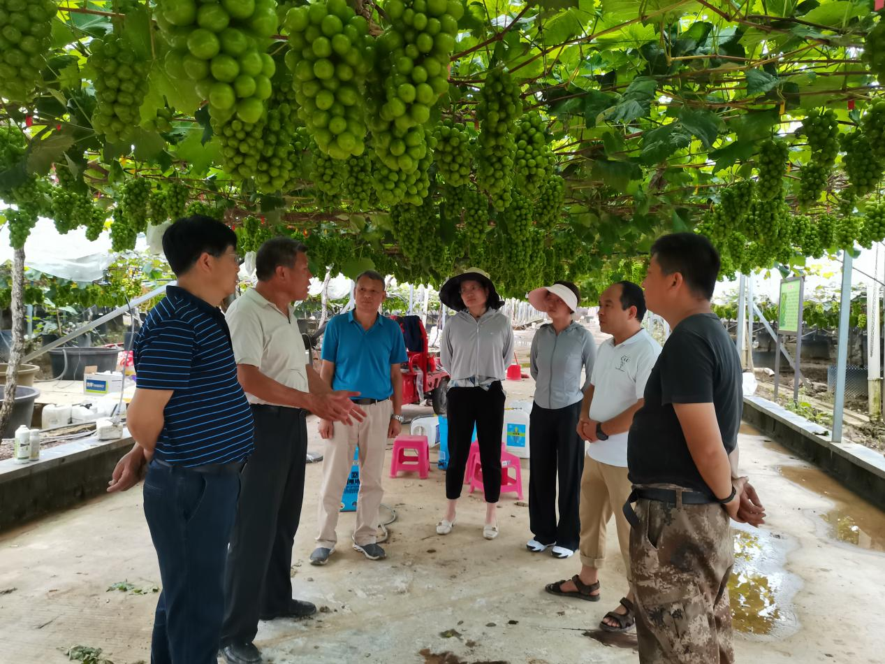 广西特色作物研究院葡萄科研团队第一时间与灵川、兴安等县(区)水果部门联系了解灾情,编写《葡萄洪涝灾后恢复生产技术措施》供受灾群众参考。洪水退去后,团队及时组织人员连续多日到受灾现场调查指导,并邀请国家葡萄产业技术体系相关岗位专家到兴安县溶江镇指导灾后恢复生产,针对不同受灾类型,为种植户提供技术方案,尽最大努力帮助种植户减少损失。