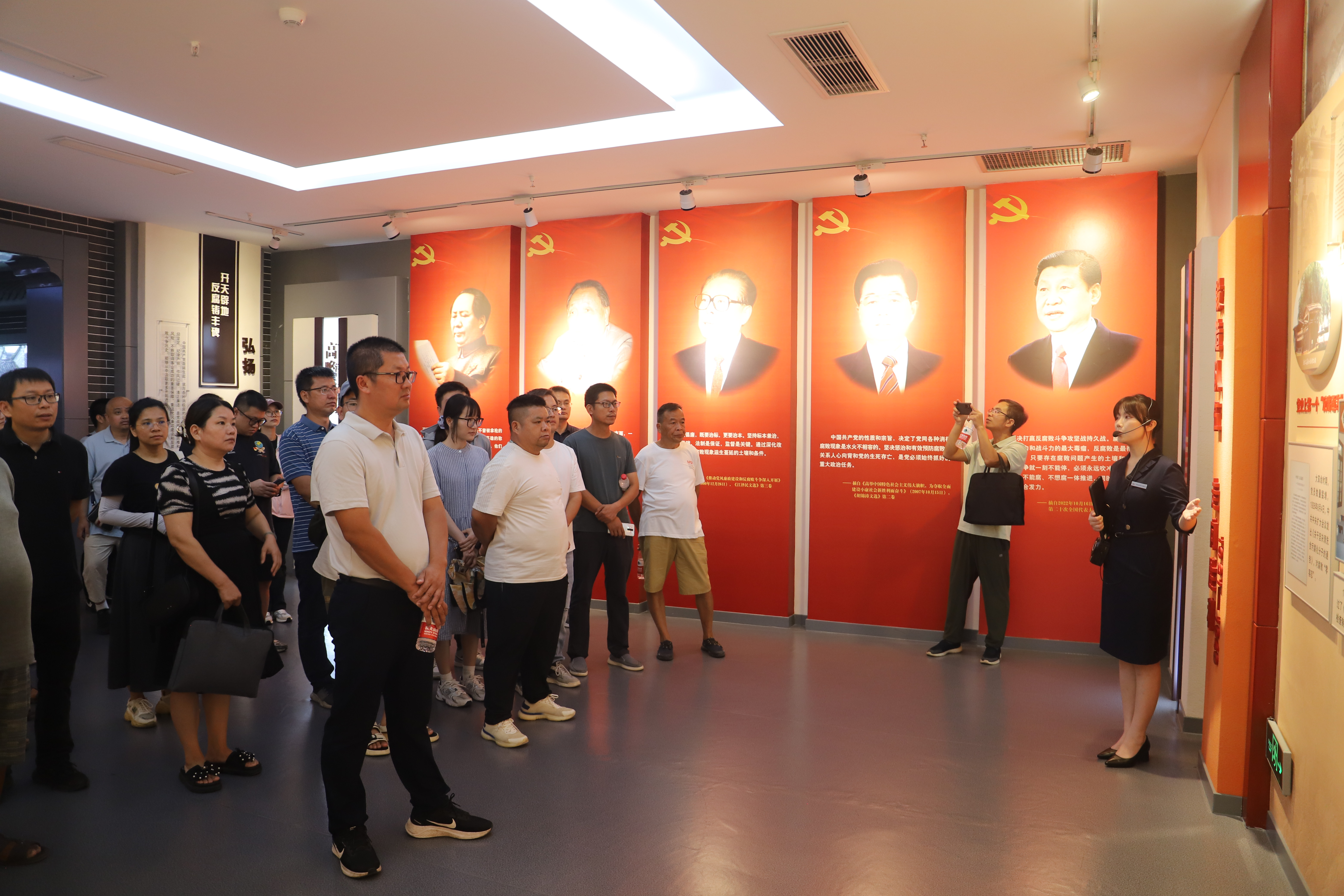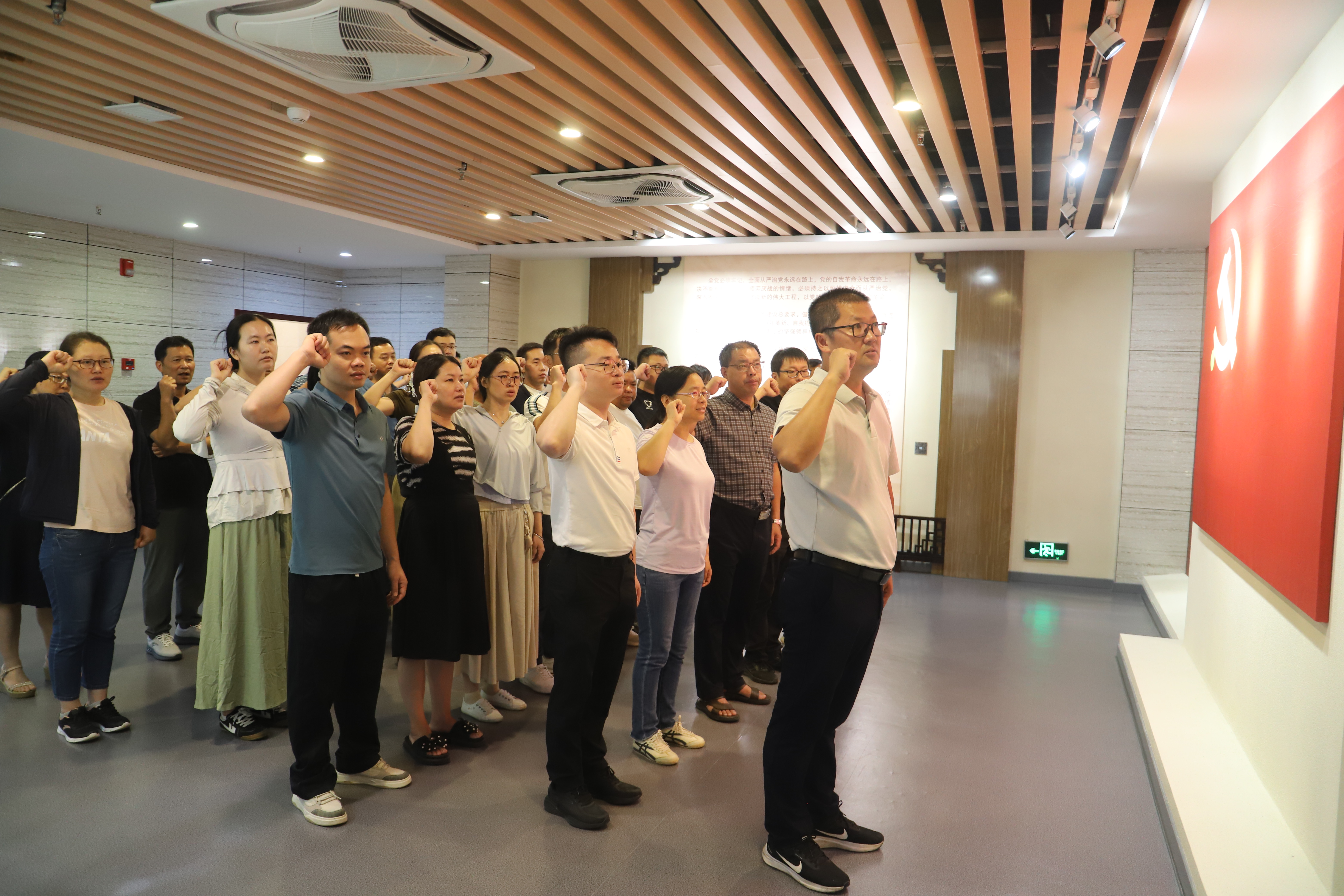 在参观学习结束之际,全体党员干部整齐列队,面对鲜红的党旗,庄严重温入党誓词,不忘初心、牢记使命。