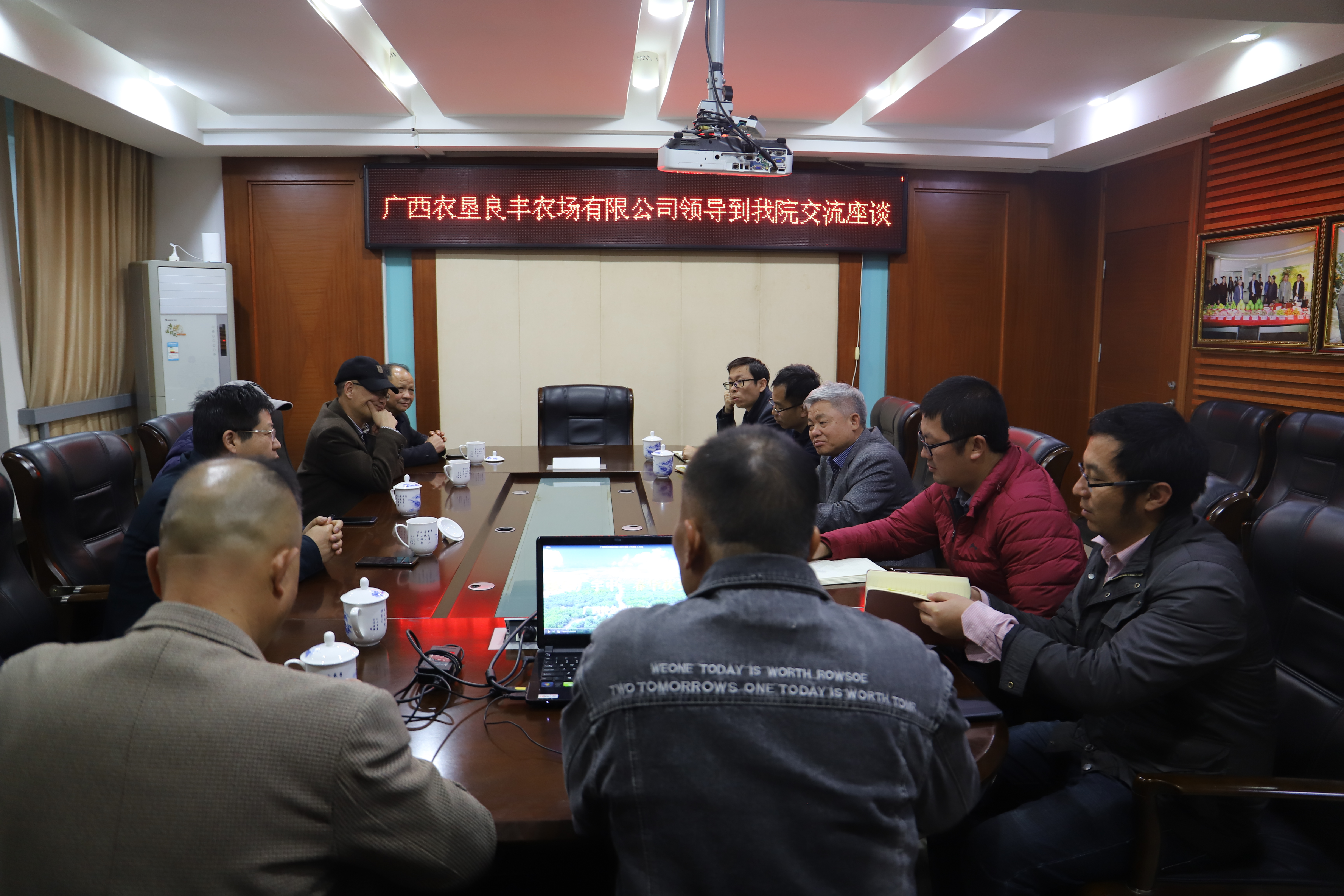 12月15日,广西农垦良丰农场有限公司党委副书记、总经理俞君一行到广西特色作物研究院座谈交流。广西特色作物研究院院长邓崇岭、副院长刘升球及科技业务科、柑橘研究所等部门负责人参加座谈交流。