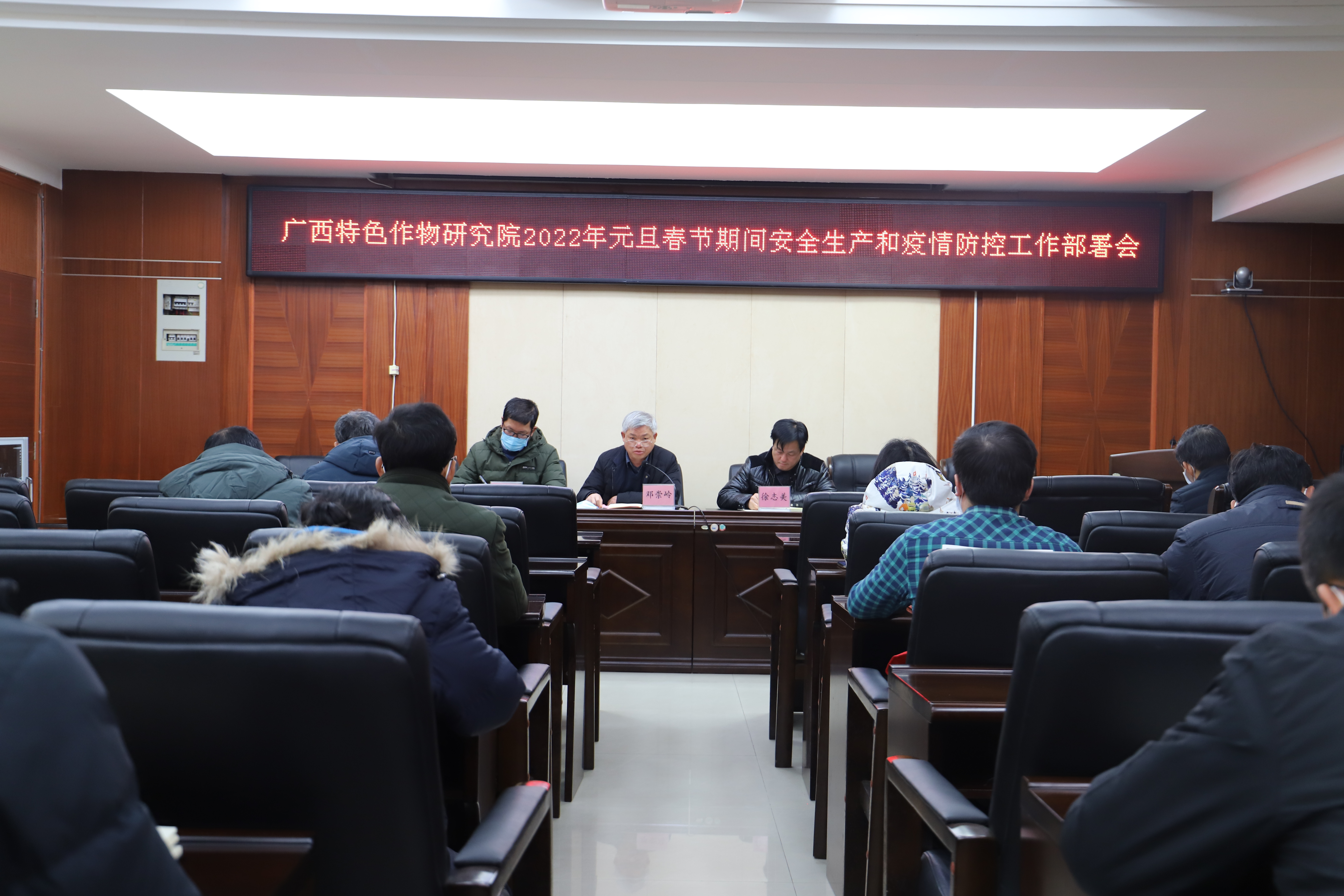 2021年12月31日,在“元旦春节”两节来临之际,为进一步做好岁末年初全院安全生产和疫情防控工作,广西特色作物研究院召开2022年元旦春节安全生产和疫情防控工作部署会,党总支书记、院长邓崇岭参加会议并讲话,党总支副书记、副院长徐志美,副院长刘升球参加会议。