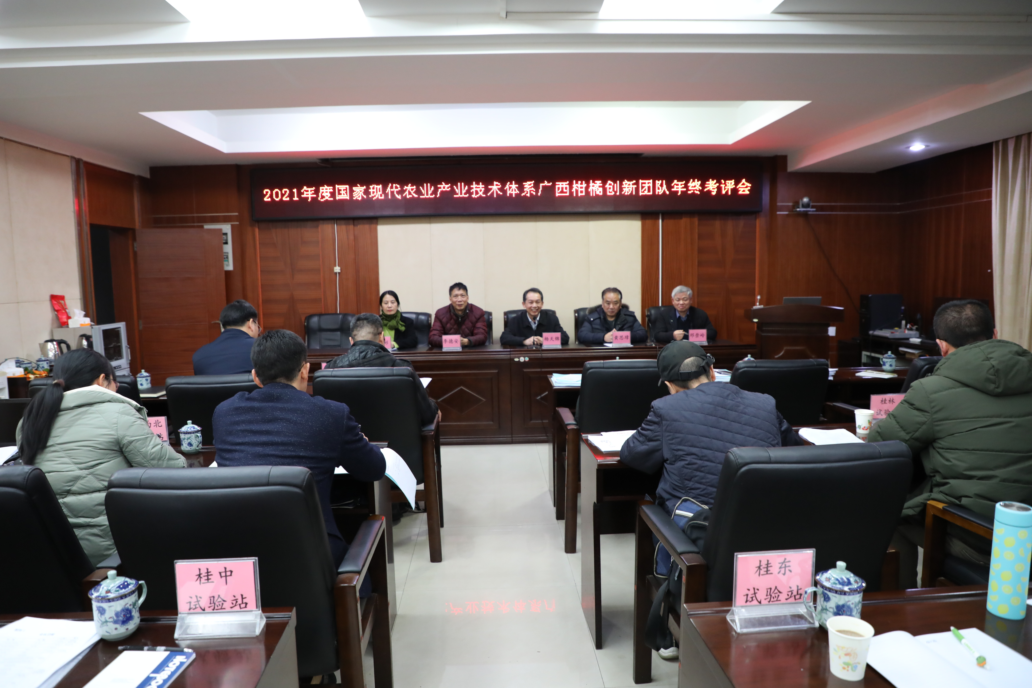 会上,邓崇岭研究员总结汇报了广西柑橘创新团队一年来的工作开展情况,并对下一步工作进行了部署,桂林、桂东、桂中、桂南、桂西北等各岗、站分别从目标任务完成情况、产业支撑提升效果、工作亮点与创新、人才能力培养、开展产业服务、参谋助手、资金管理、存在问题及意见建议等方面对2021年工作进行了总结汇报。考评专家组在听取工作总结汇报后分别从技术推广、科技创新、服务产业和经费使用等方面提出了意见和建议。