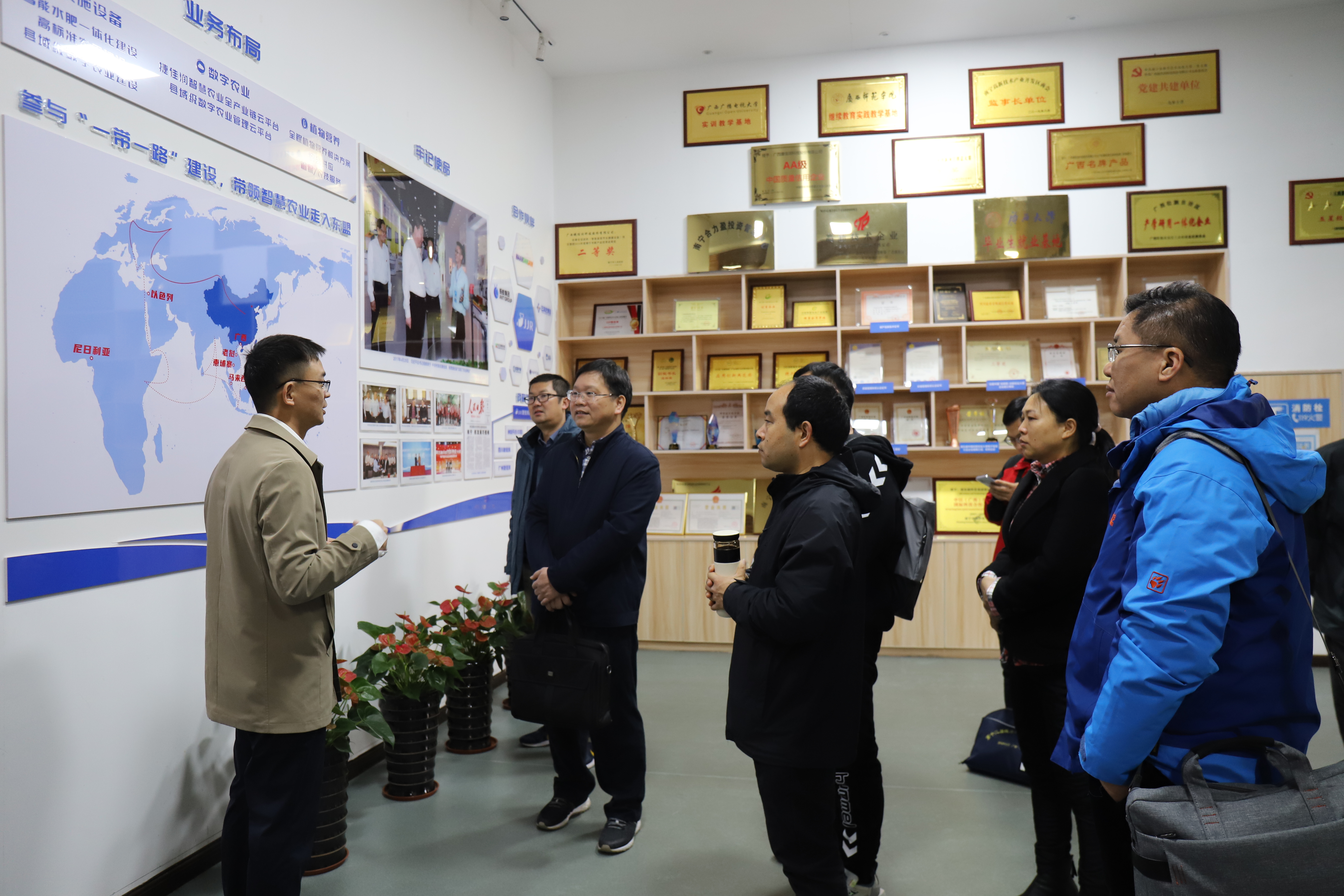 在捷佳润科技集团股份有限公司,考察组参观学习了“智能水肥一体化及数字农业系统”开发及应用情况,开阔了数字农业科技创新研究方面视野。