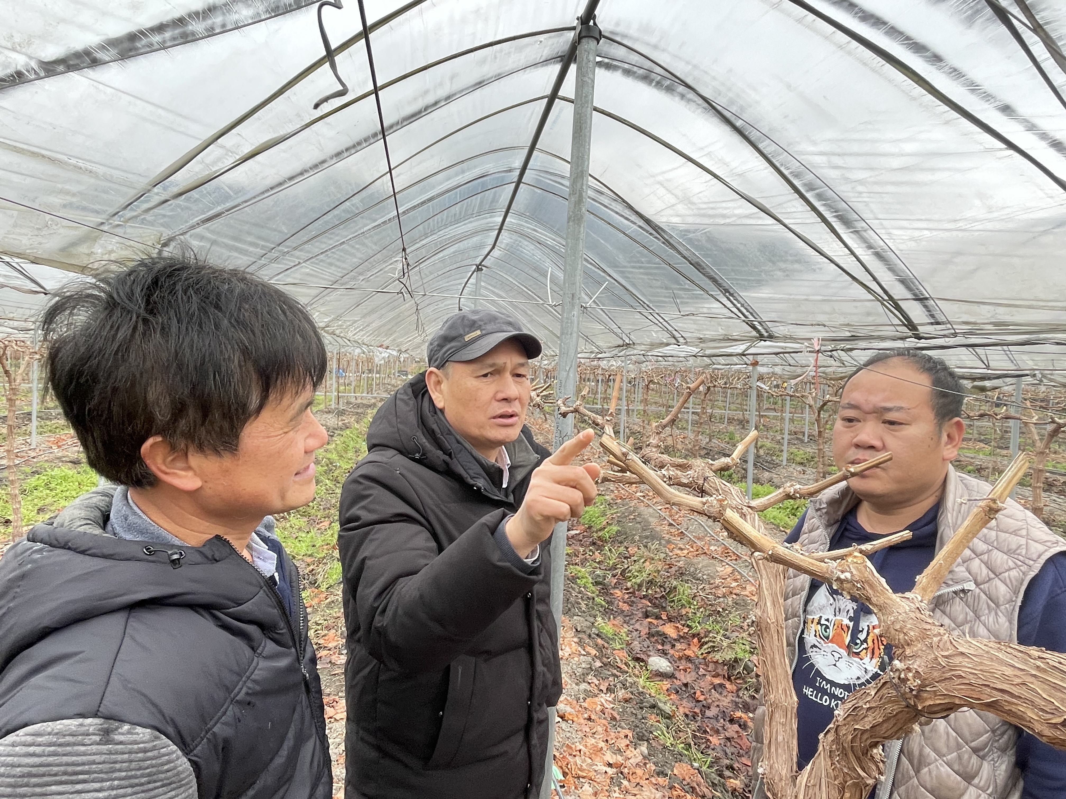 2022年2月以来,桂北出现持续低温阴雨天气,当前葡萄物候期普遍处于休眠期,只有少数促早栽培葡萄园开始进入绒球期期,葡萄萌芽期预计比常年推迟10~15天。因此,近期葡萄出现冻害可能性小,但已进入萌芽期的促早栽培葡萄园存在冻害风险。专家团队每到一个果园,针对不同葡萄园情况,结合今年春季气候特点,向陪同的当地农业技术推广人员、葡萄种植户详细讲解了葡萄春季管理技术要点及葡萄防寒抗冻技术措施。