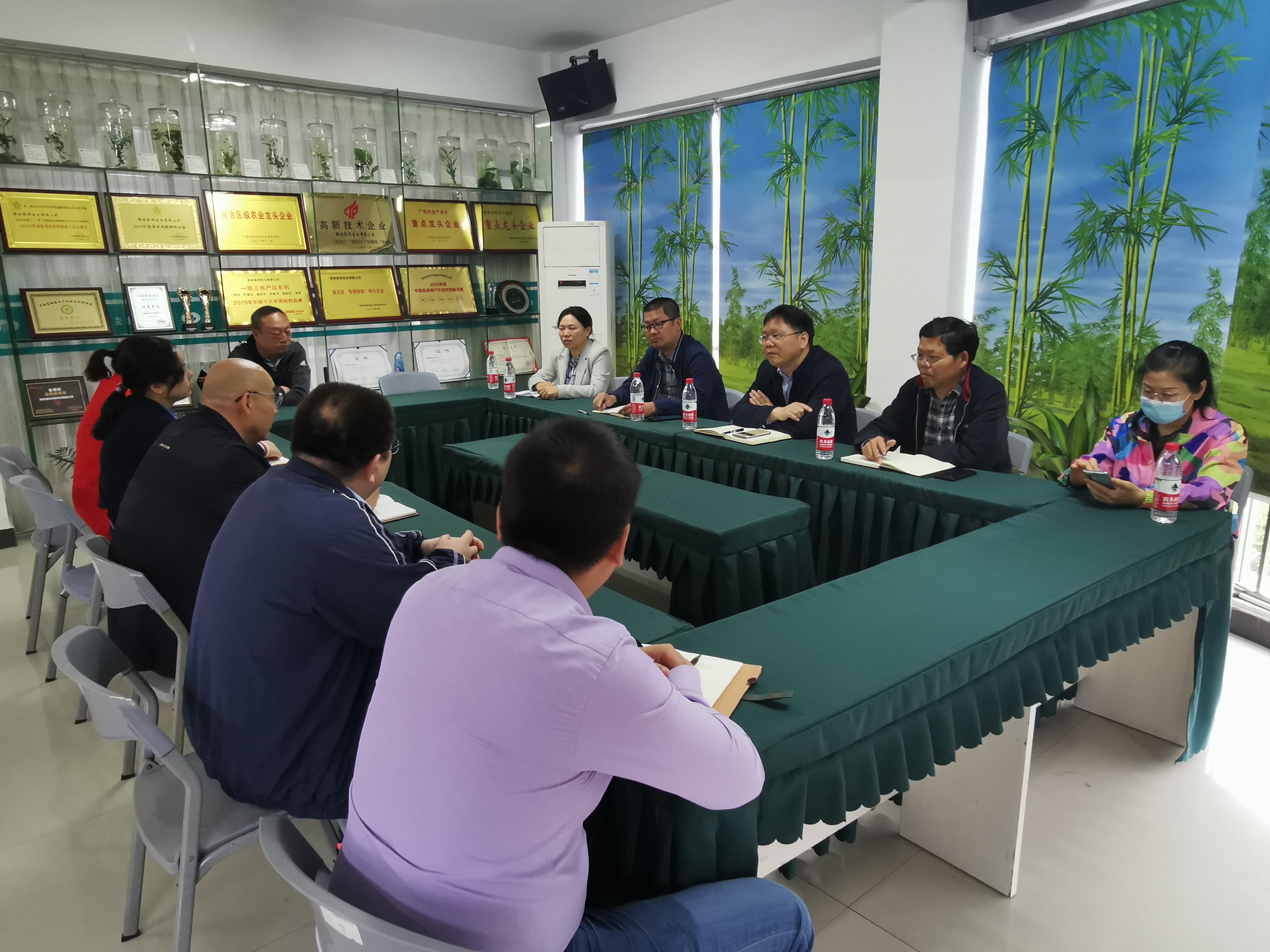 2022年4月15日上午,广西特色作物研究院院长郭小强一行6人到桂林集琦生化有限公司考察并座谈交流。