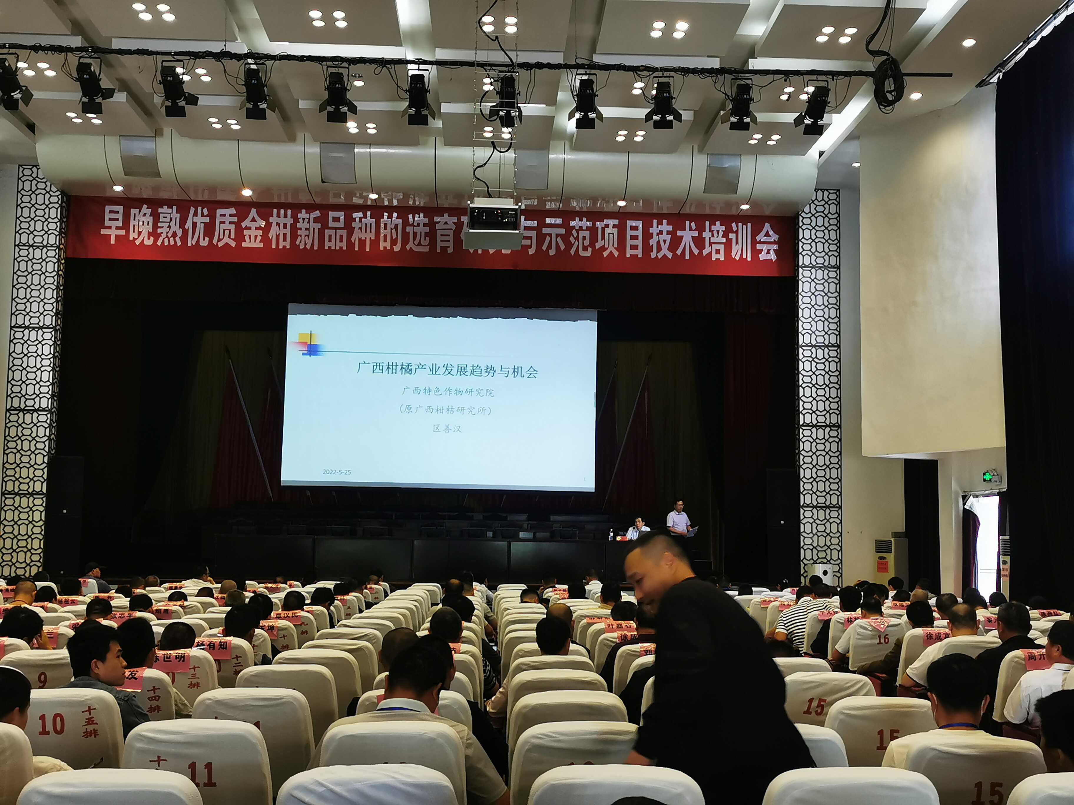 2022年5月25日下午,由阳朔县委组织部举办的“2022年阳朔县村(社区)党组织书记、主任综合能力提升班暨发展壮大村级集体经济骨干培训班”在县人民会堂继续举行。针对村级集体经济缺乏持续高效产业支撑,以及近年来柑橘产业产能过剩、价格持续低迷,部分果农微利甚至亏本经营,柑橘产业发展前景、机会不明等热点问题。广西特色作物研究院科技特派员区善汉研究员为培训班作了《广西柑橘产业发展趋势与机会》的交流,与200余名村委会及社区书记、主任分析了广西柑橘产业现状、发展趋势、面临的挑战、发展的机会,提出了产业发展建议,增强了村(社区)干部科学发展柑橘产业、壮大集体经济的决心与信心,受到了学员们的热烈欢迎。