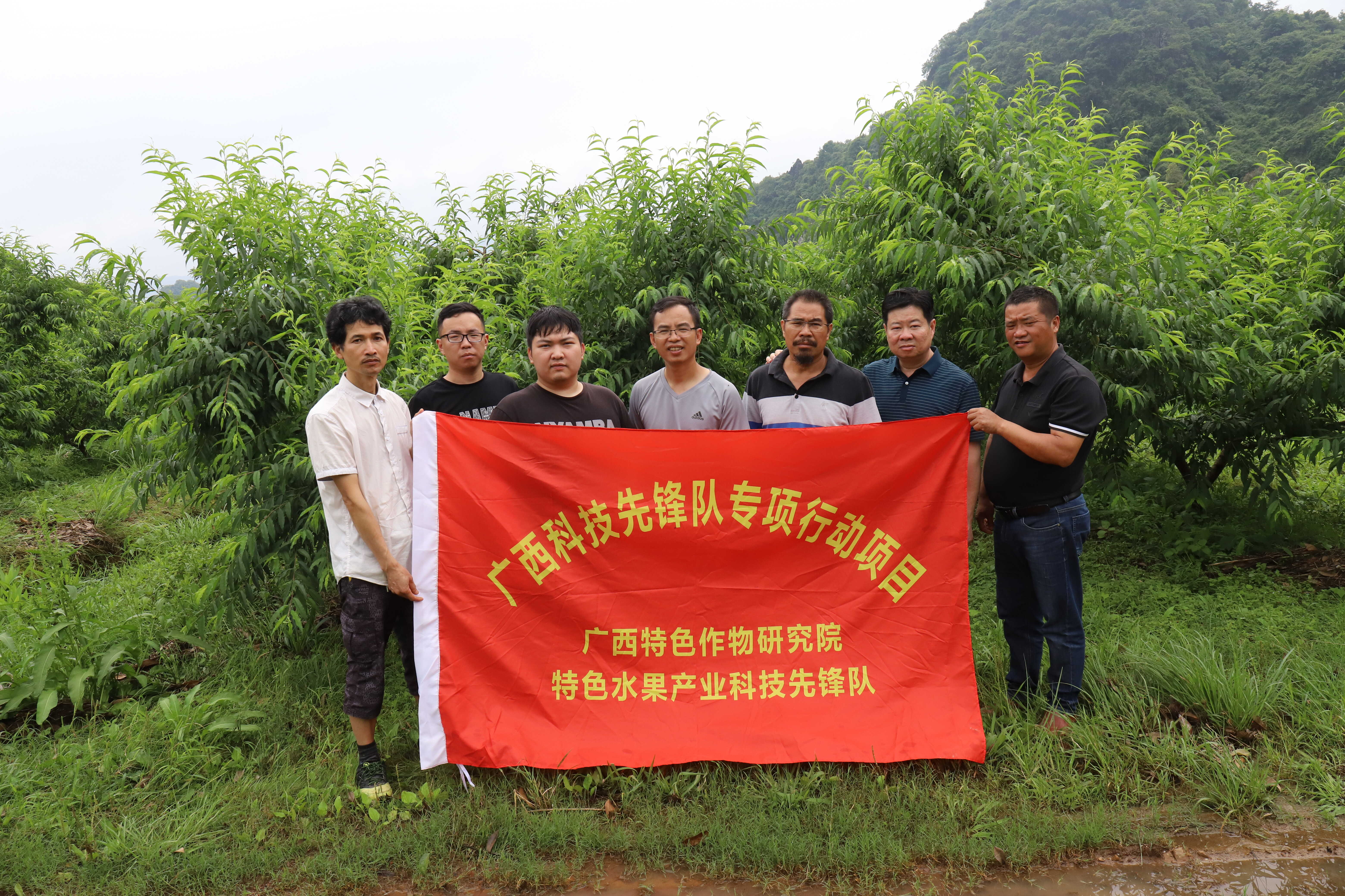 6月4—5日,桂林市普降暴雨,24小时降水量高达200mm以上,多地桃园严重受灾。6月6日,广西特色水果产业科技先锋队在万保雄副研究员的带领下与灵川县水果生产服务中心、灵川县海洋乡政府相关工作人员积极深入灵川县海洋乡灾区了解灾情,指导抗灾和生产自救工作。