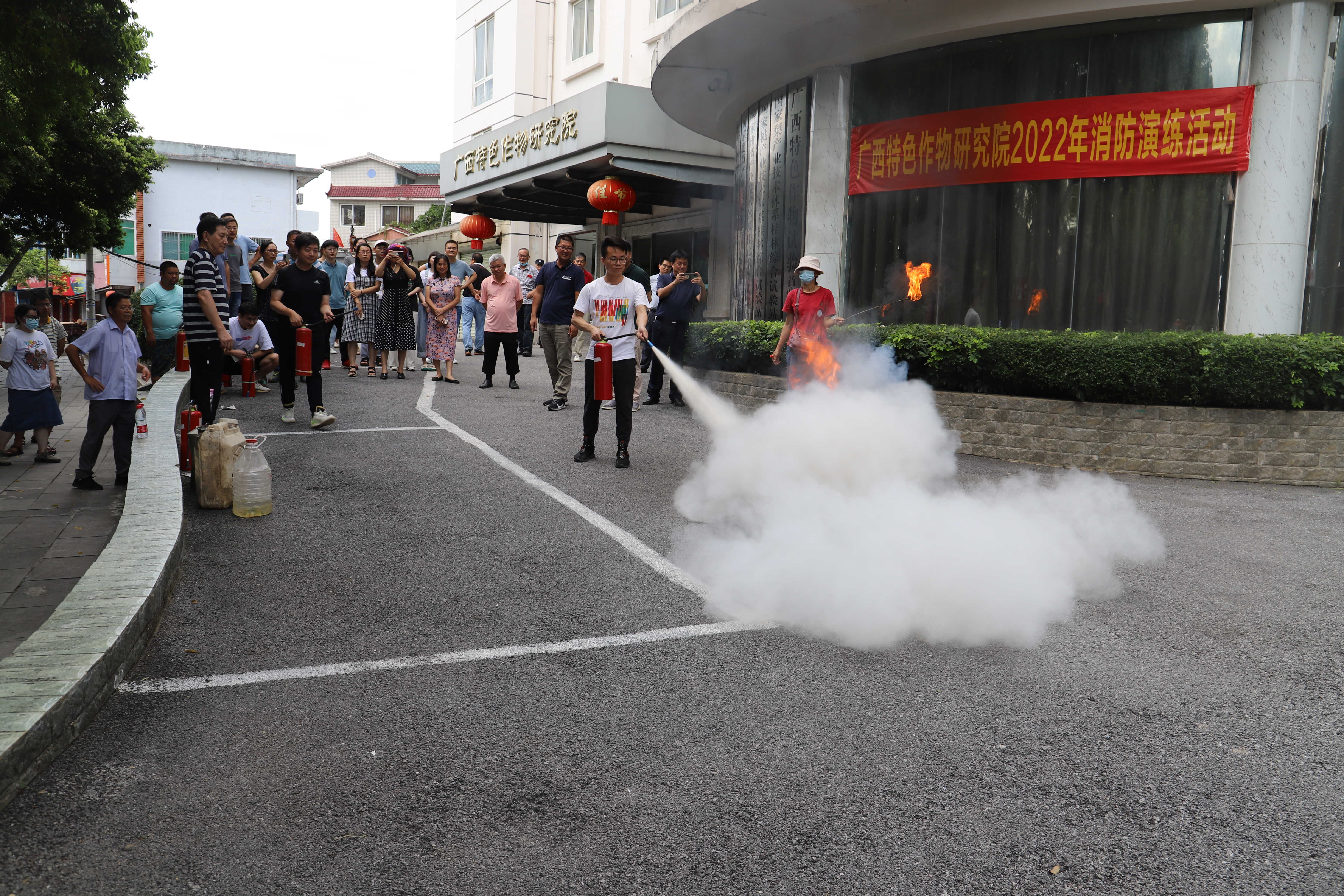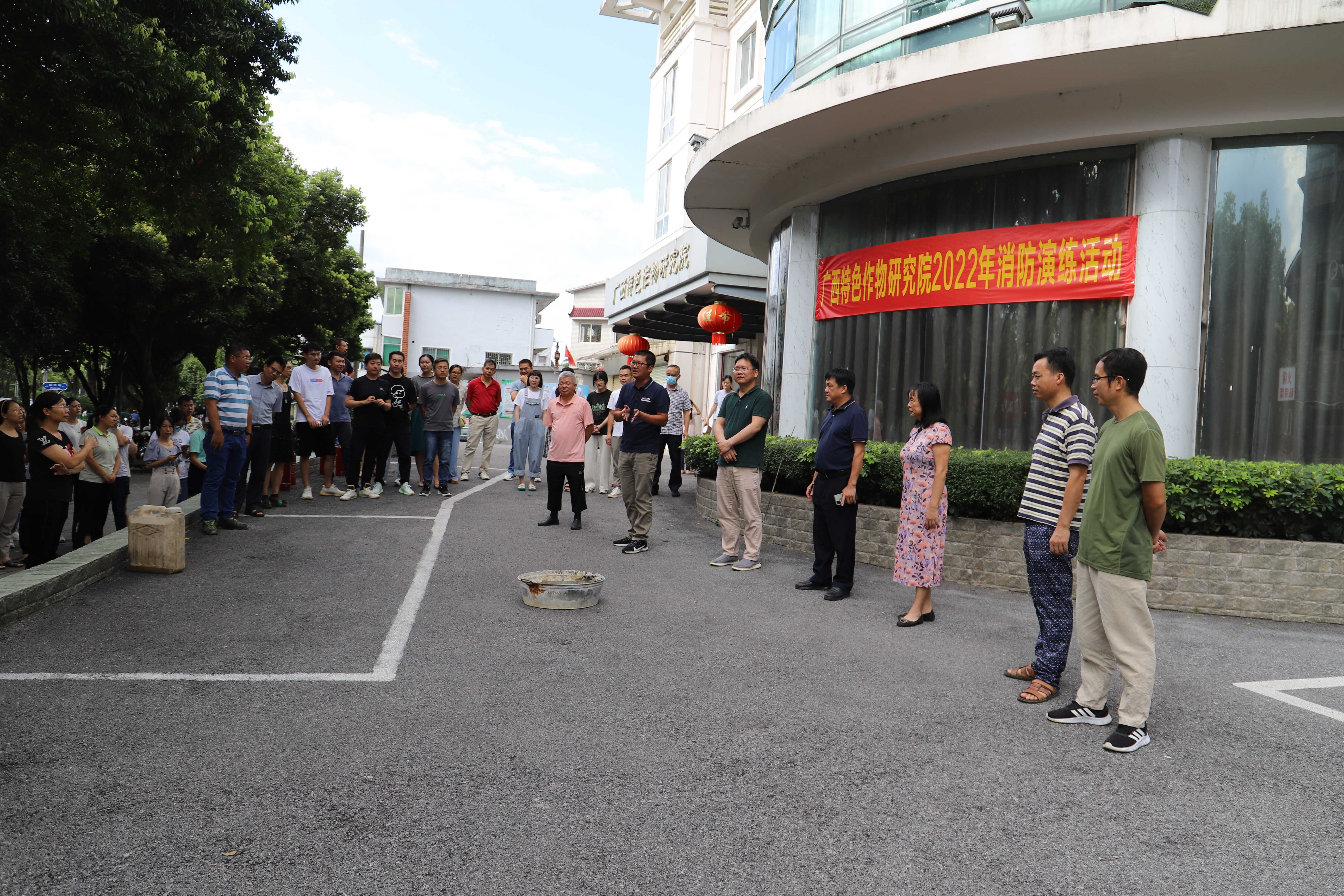 为强化我院干部职工及科研助理消防安全意识,掌握消防技能,提高职工的安全意识和应急逃生能力,消防灭火能力,广西特色作物研究院7月21日组织开展2022年消防演练活动,我院全体干部职工及科研助理100余人参加了此次活动。