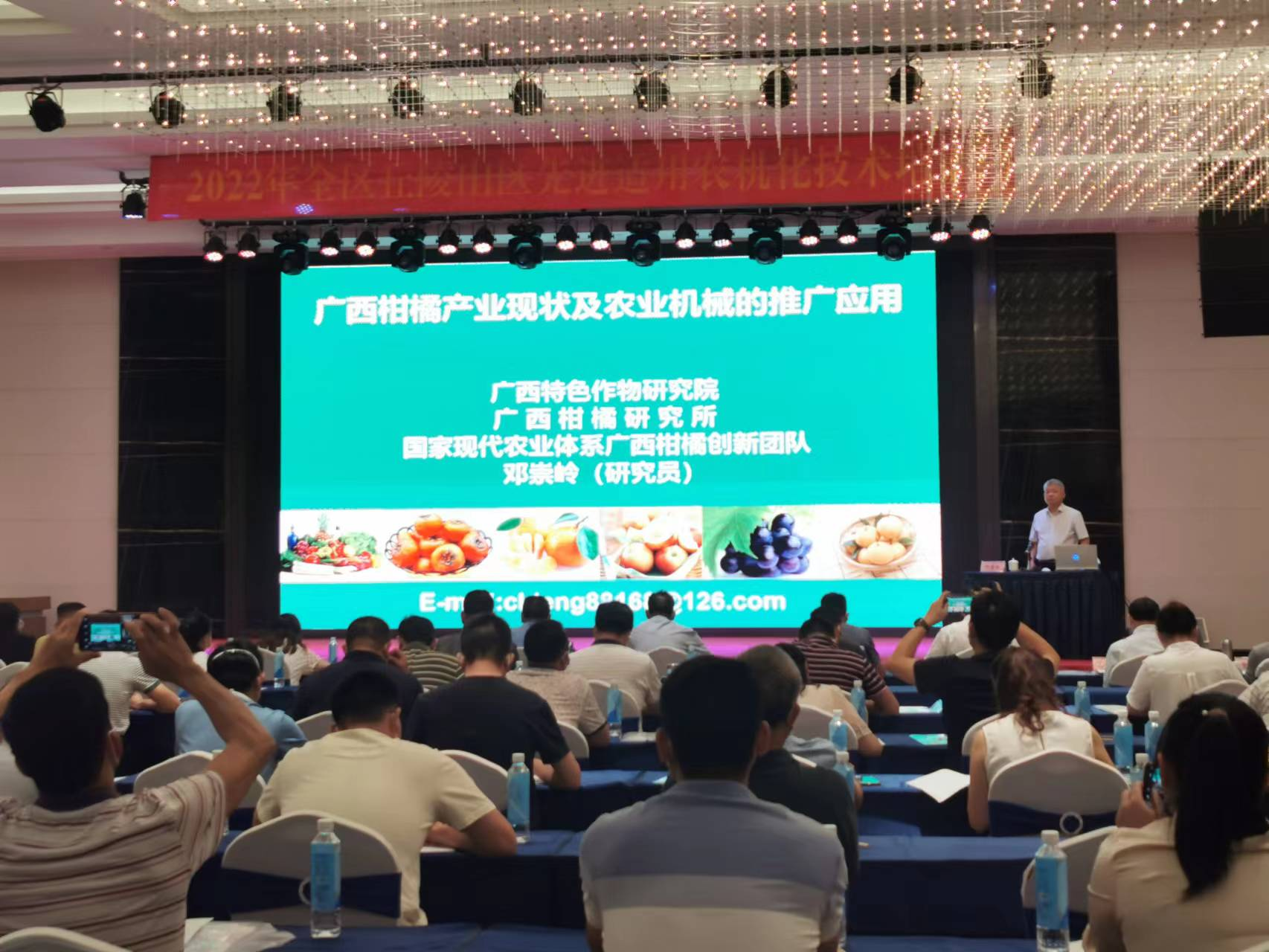 9月22日,由成人直播 机械化服务中心主办,百色市农业机械化服务中心承办的2022年全区丘陵山区适用农机化技术培训班在百色市梦之源酒店举办。广西柑橘创新团队首席专家邓崇岭研究员受邀参加并进行授课培训。