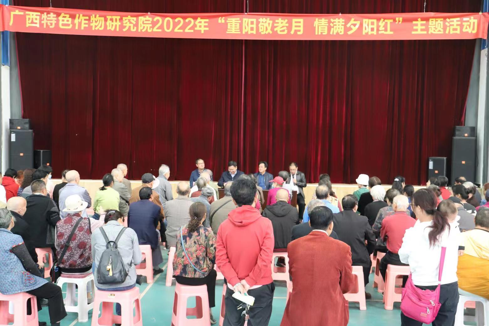 10月12日,广西特色作物研究院在特作院小区球馆举办2022年重阳节退休老同志趣味游园活动。书记、院长郭小强出席活动并讲话,副书记、副院长徐志美,副院长刘升球参加活动。