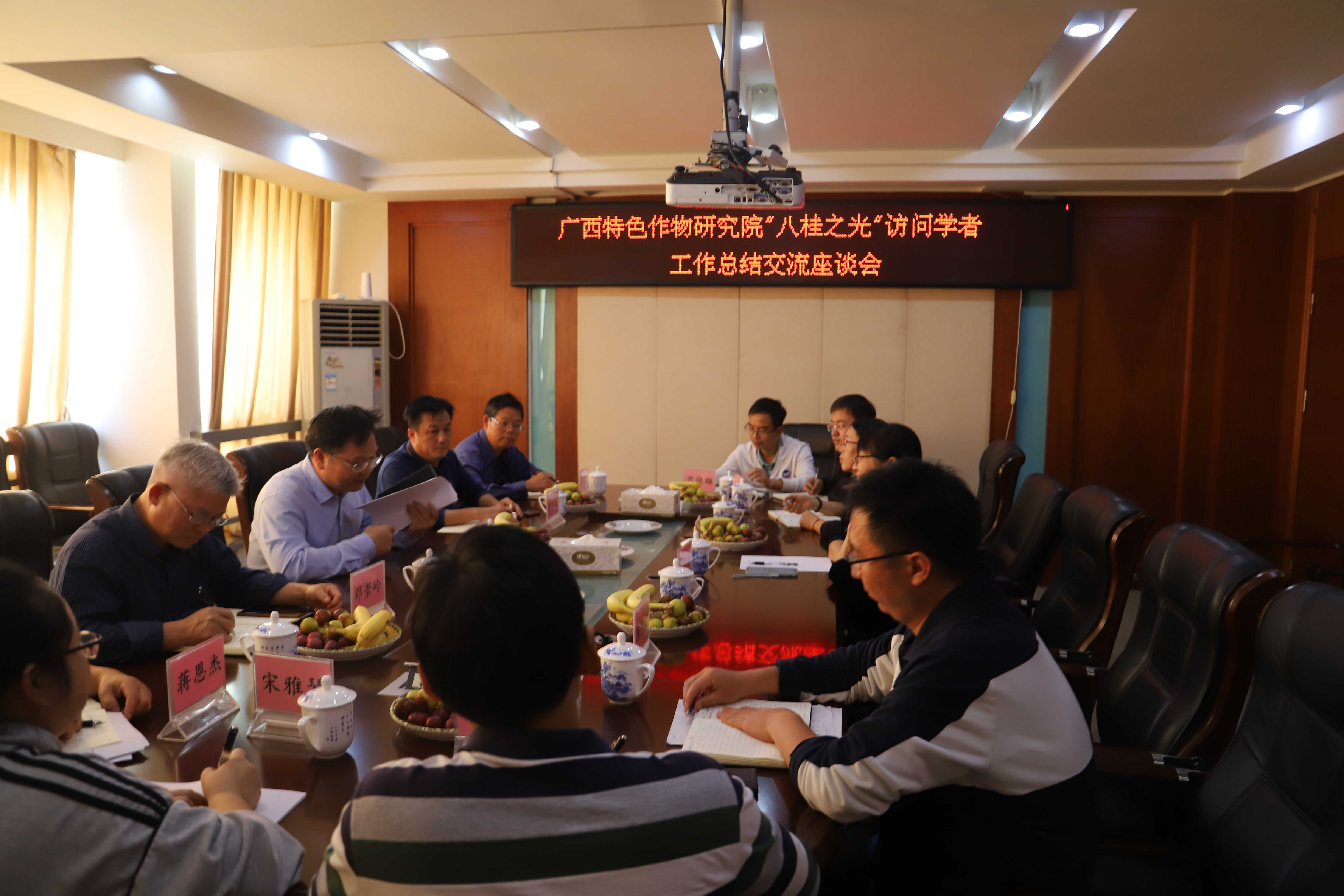 10月31日,广西特色作物研究院召开“八桂之光”访问学者工作总结座谈会。书记、院长郭小强,副书记、副院长徐志美,副院长刘升球,“八桂之光”访学研修人员全州县成人直播 局水果站马小萍,有关部门负责人、课题组成员等参加座谈。
