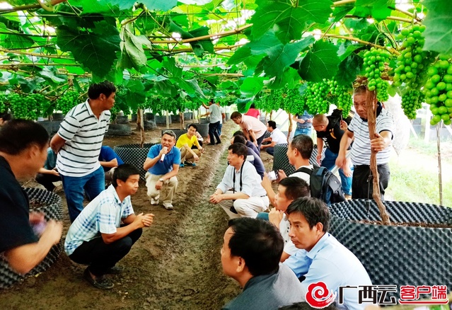 专家在阳光玫瑰葡萄园现场培训果农使用无病毒苗木。