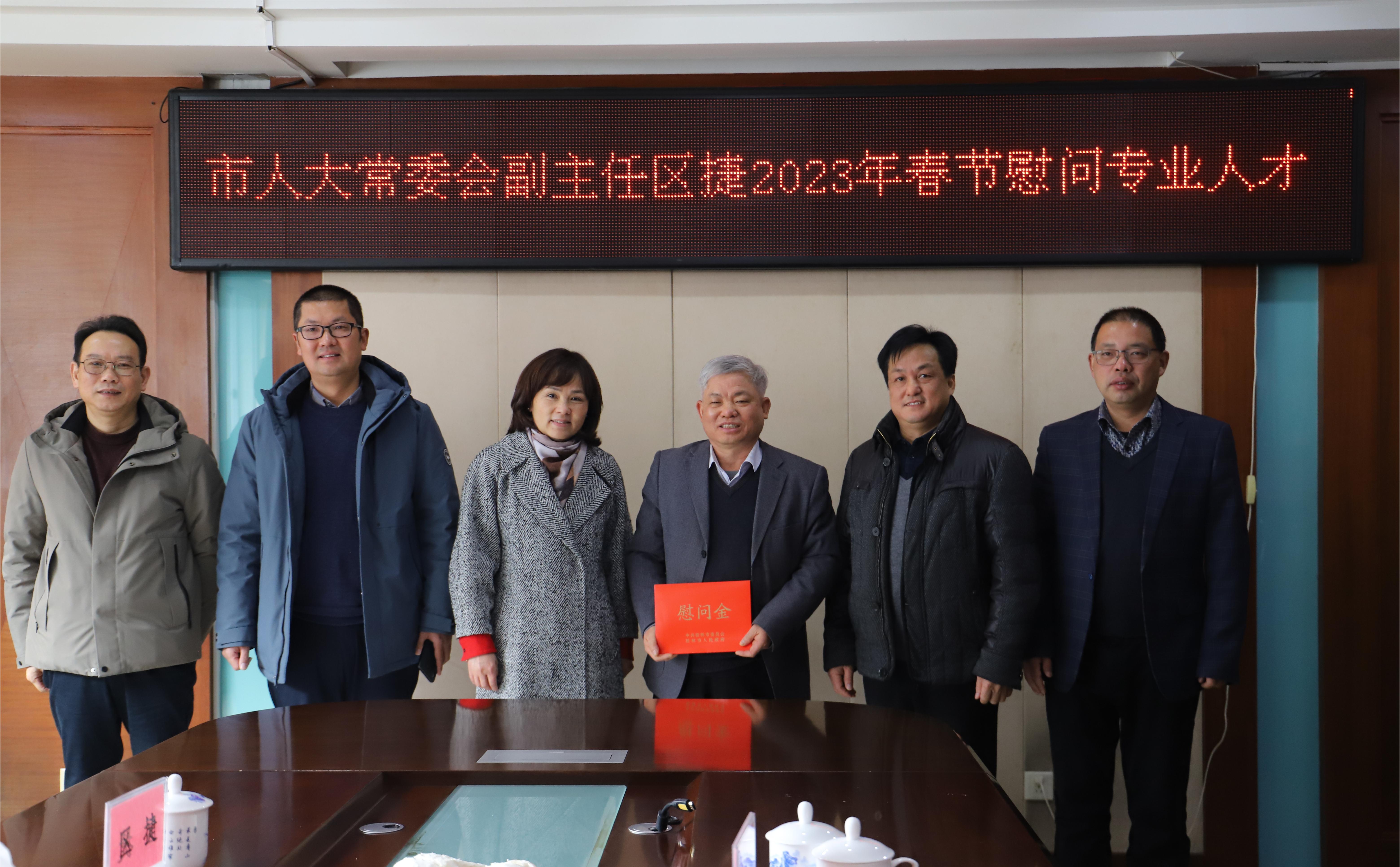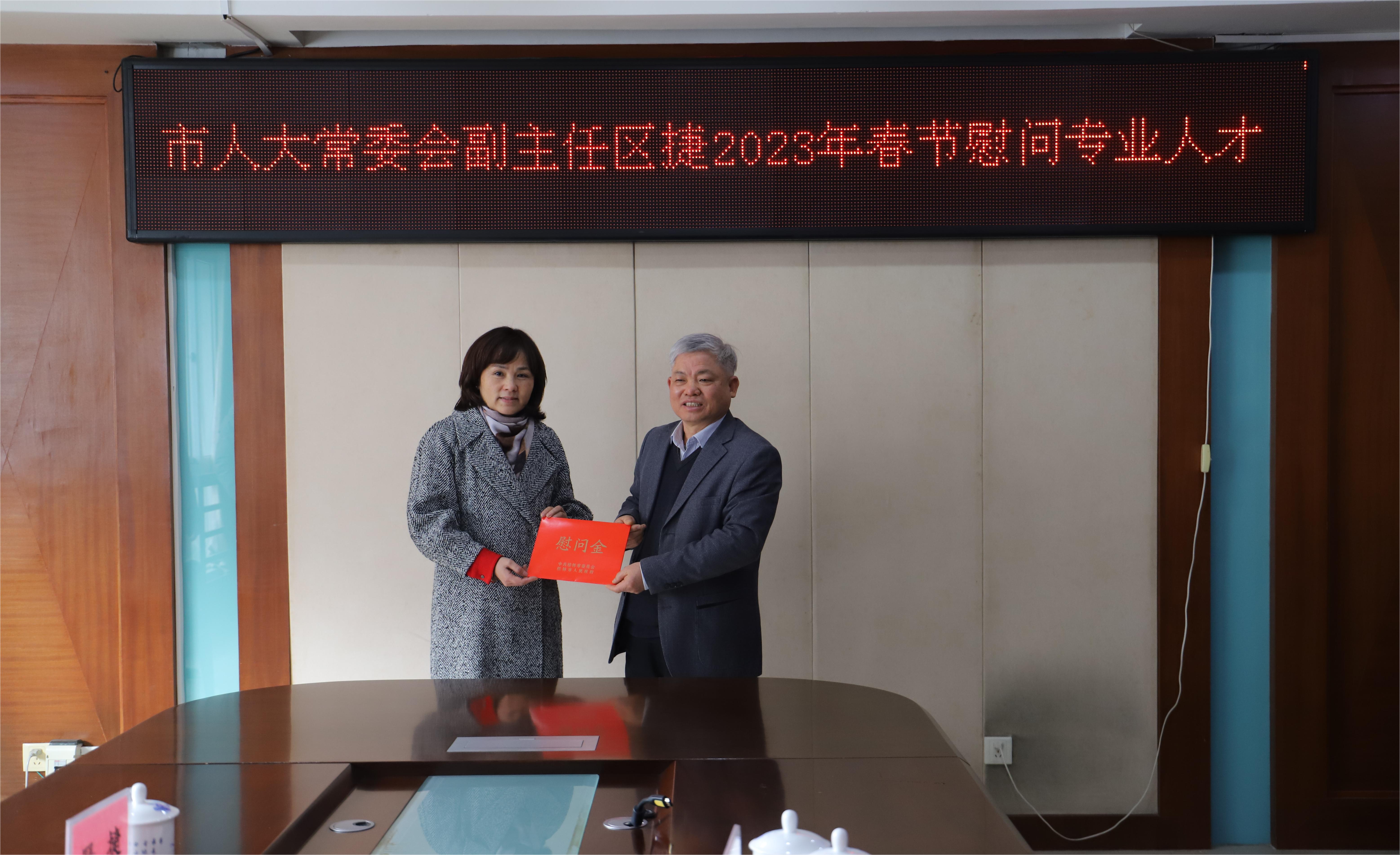 1月18日,桂林市人大常委会副主任区捷到我院慰问二级研究员、自治区优秀专家、享受成人直播 特殊津贴、国家现代农业产业技术体系广西柑橘创新团队首席专家、广西最美科技工作者邓崇岭,代表市委市政府为专家送上新春祝福。桂林市人大财经委副主任蒋奔程,广西特作院副书记、副院长徐志美,副院长刘升球陪同参加慰问。