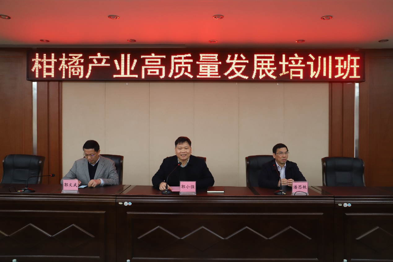 为进一步贯彻落实《广西推进水果产业高质量发展实施方案》文件精神,切实提升柑橘产业科研技术水平,促进柑橘产业高质量发展,2月3日,广西特色作物研究院在桂林举办柑橘产业高质量发展培训班。培训班邀请华中农业大学郭文武、潘思轶、马洪菊等专家现场进行授课。广西特色作物研究院院长郭小强出席培训班并在开班仪式上讲话。