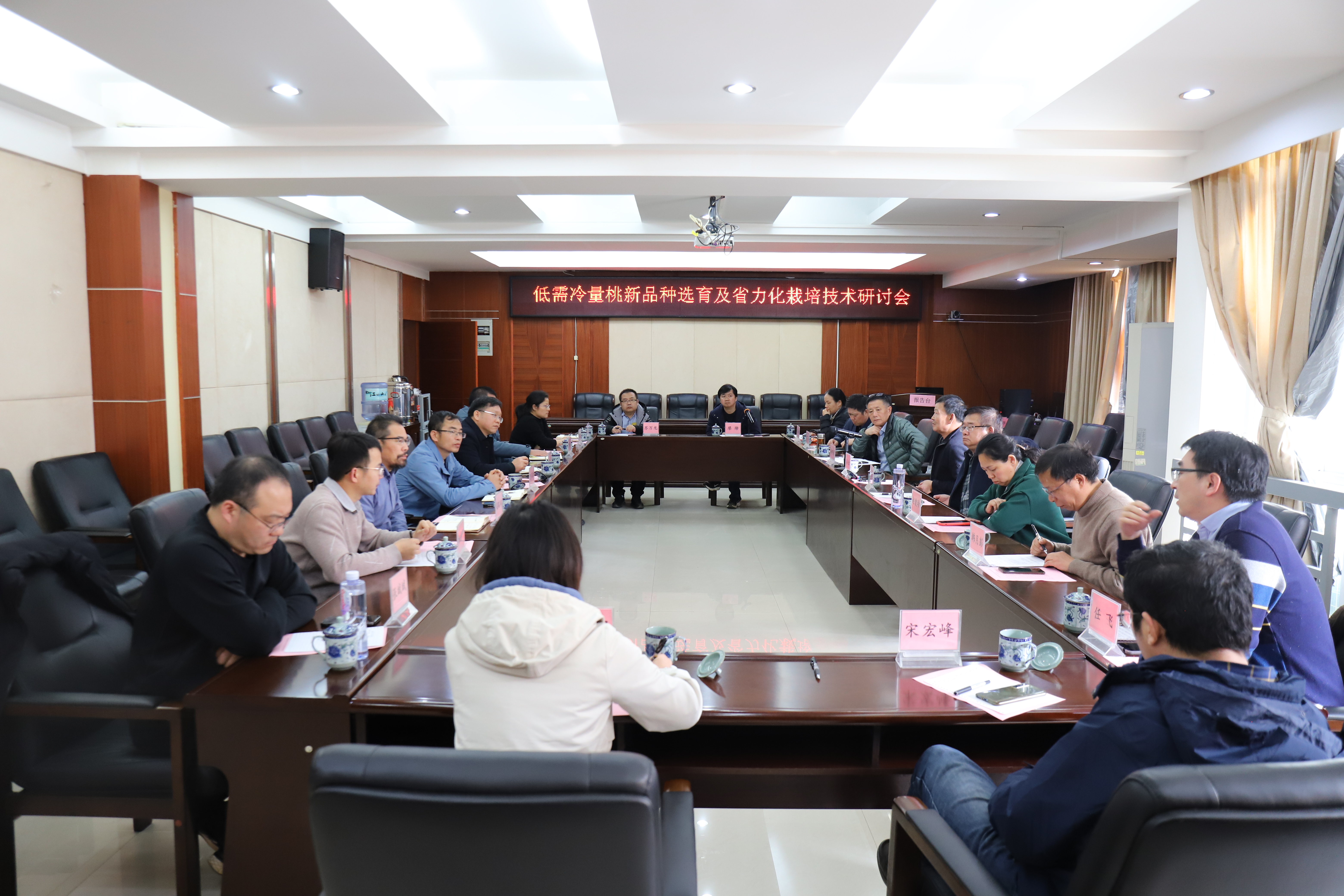会议邀请了国家现代农业桃产业技术体系首席科学家姜全研究员等13位岗位专家莅临指导,与会人员就桃冬季休眠需冷量机理研究、低需冷量桃新品种选育及省力化栽培技术进行了深入探讨,一致认为,随着全球气候变暖,我国南方地区对优良低需冷量桃品种需求迫切,要加快桃冬季休眠与需冷量相关机理研究,选育更多优质、耐贮运、不同熟期优良新品种,示范推广绿色高效栽培技术,为乡村振兴提供品种和技术支撑。