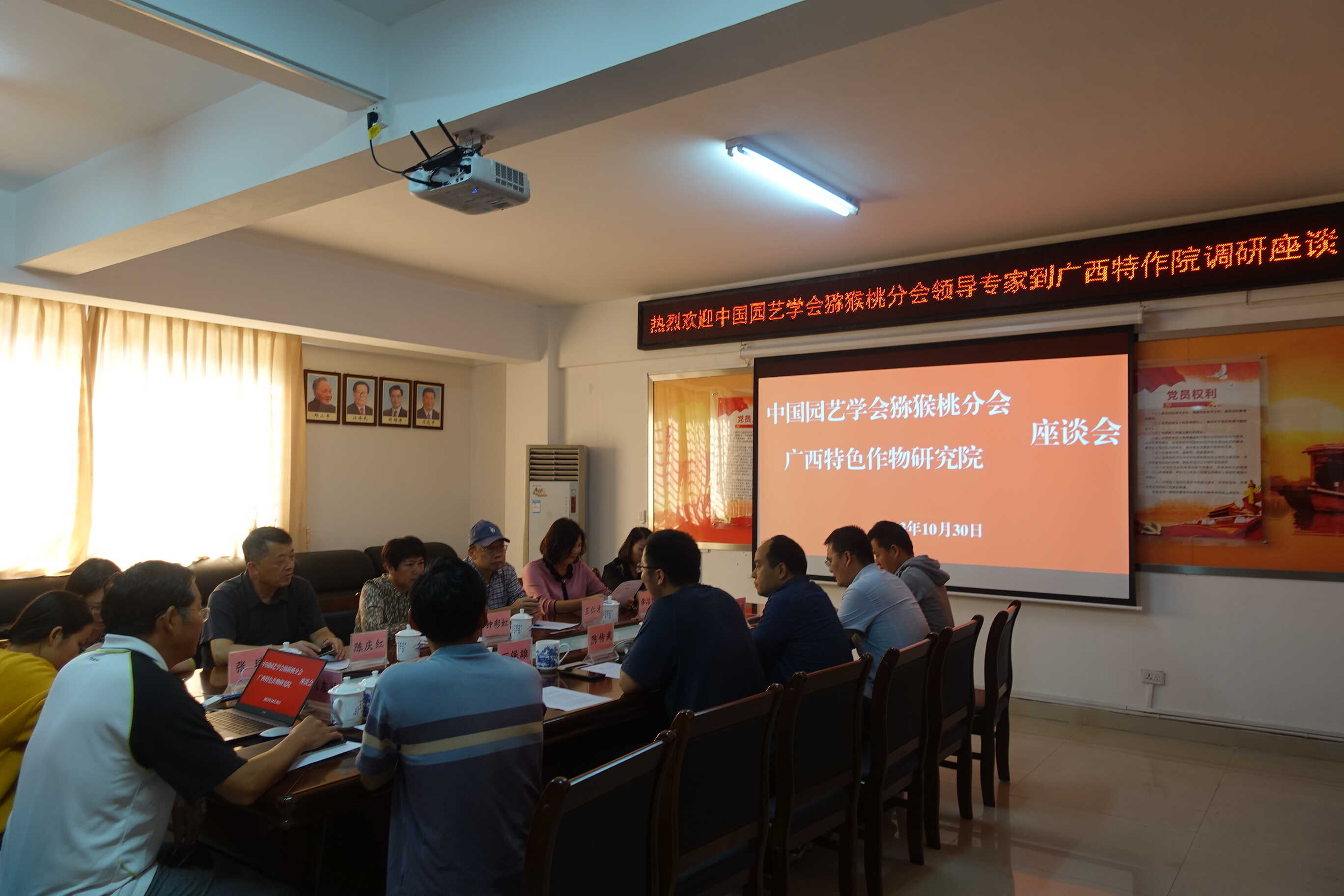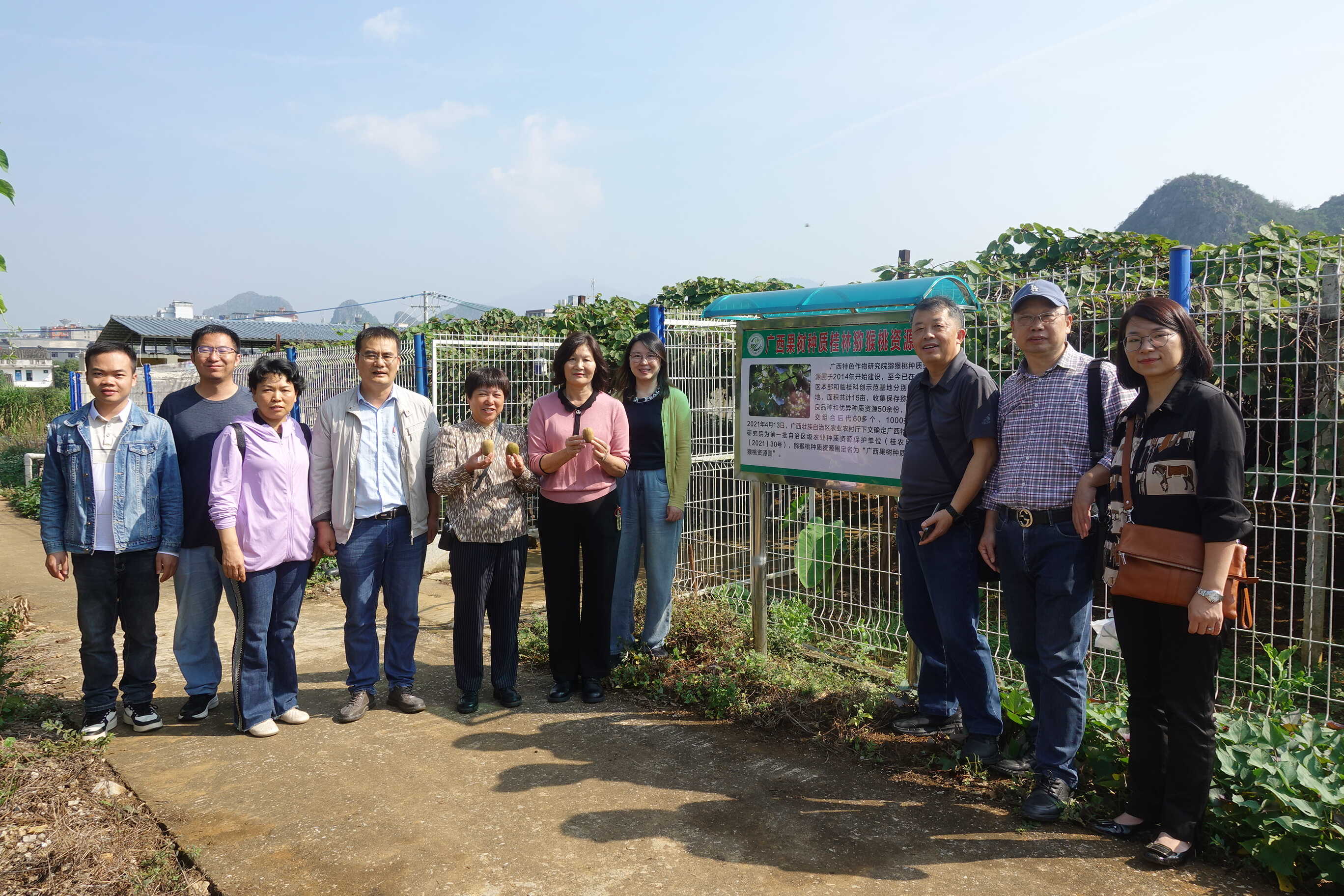 专家组先实地考察了我院猕猴桃种质资源圃、柑橘种质资源圃、柑橘无病毒良种繁育苗圃等基地,随后,与我院相关科研人员就猕猴桃、柑橘等产业发展和科技创新工作进行了座谈交流。专家组对我院猕猴桃、柑橘等团队的工作给予肯定,希望进一步挖掘广西本地资源做出自身特色。双方还就相关产业加强合作研究进行了深入交流。