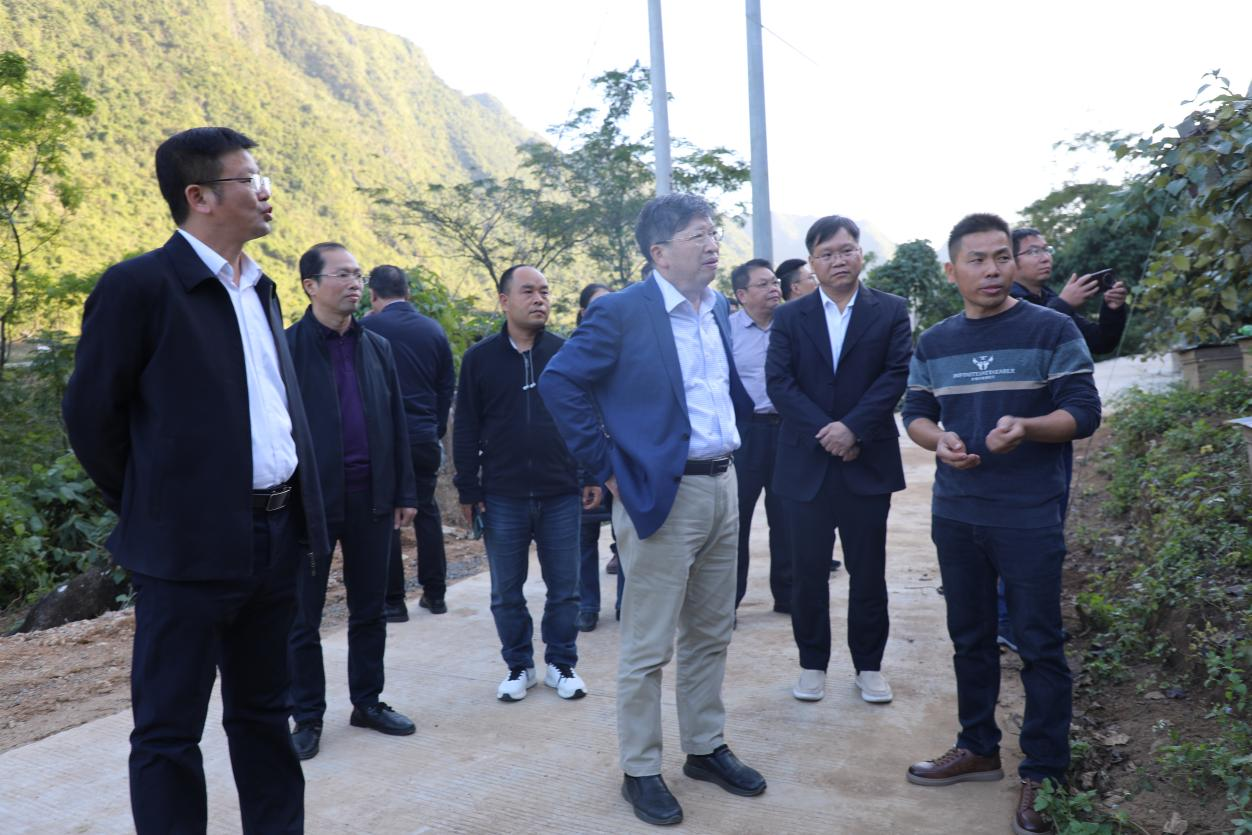 邓秀新院士为广西—东盟果蔬产业技术研究中心揭牌并参加广西现代农业高质量发展院士专家恳谈会,会议结束后到都安康盛生态种养专业合作社阳安社区下梯毛葡萄核心示范基地、都安建兴野生葡萄酒有限公司以及都安大兴镇国隆村拉温毛葡萄基地考察调研。针对毛葡萄酒原料成本偏高、市场竞争力缺乏、酒厂库存压力大等问题,建议结合广西丰富的水果资源优势,以毛葡萄(高酸、富含花青素)果汁为基础,研究开发香味浓郁、富含多种维生素等营养成分的系列复合果汁饮料,为都安毛葡萄产业的发展提出了建设性的指导意见。