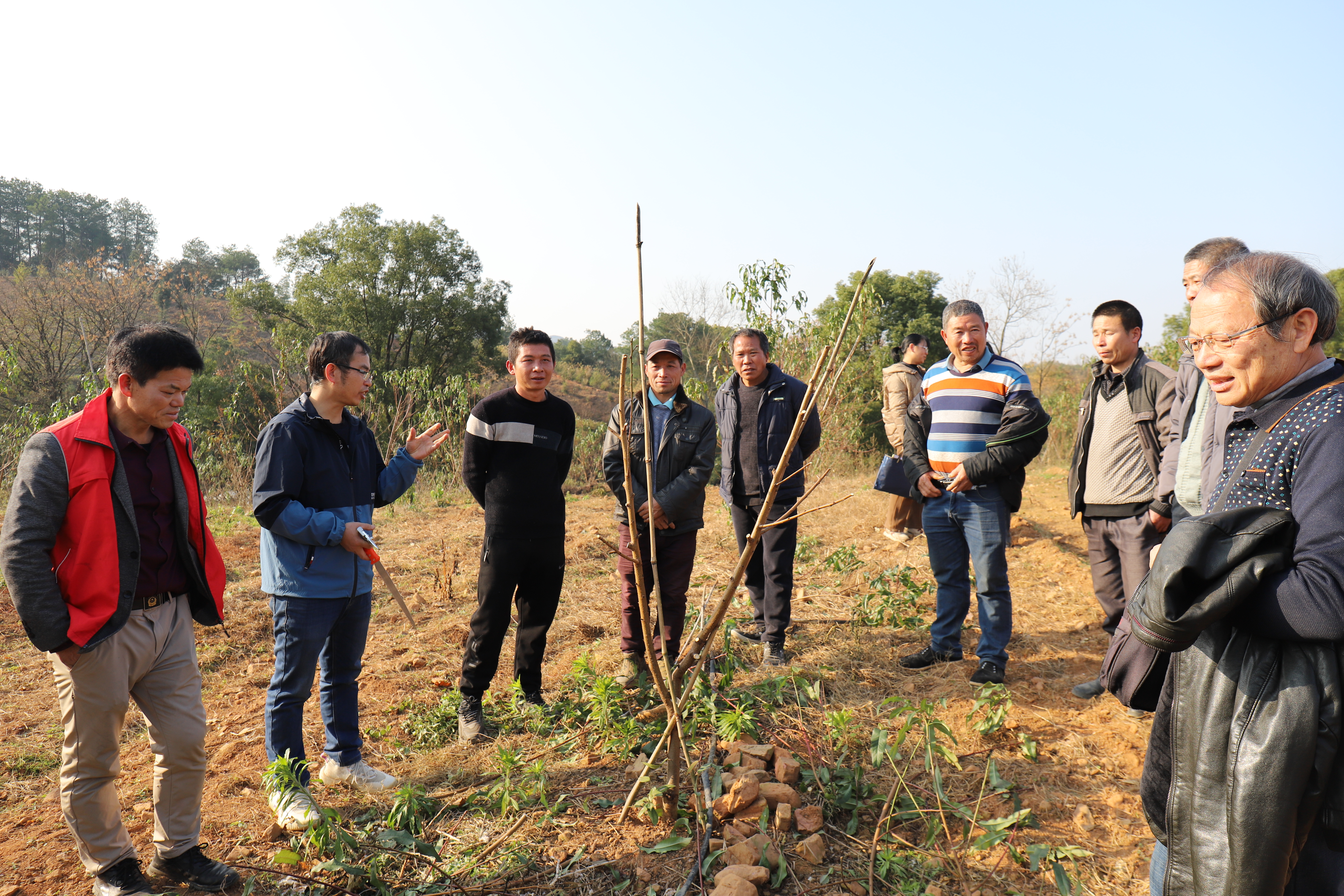 12月27日,广西特色作物研究院联合灌阳县成人直播 局在灌阳县水车镇举行桃树冬季修剪技术现场培训。