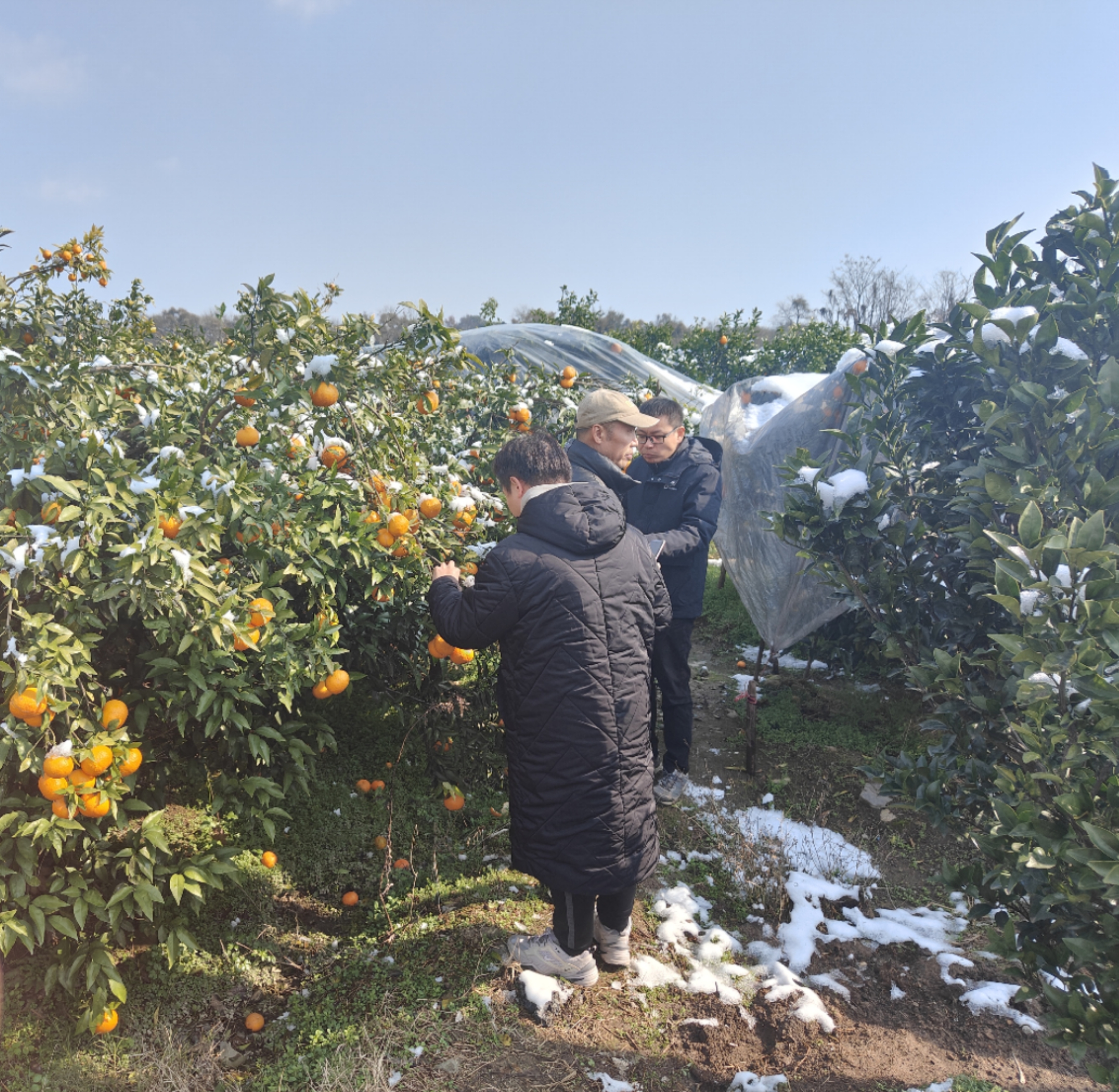 2024年1月23日,为应对雨雪冰冻天气,做好柑橘防冻害工作,广西特色作物研究院柑橘研究所所长娄兵海研究员带领团队成员,到全州县咸水镇进行柑橘生产防冻指导。