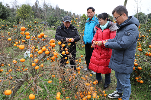 邓崇岭一行对龙水镇、绍水镇等地的柑橘园受冻情况进行了走访和实地考察,与果园管理人员深入交流,并针对当前的低温天气提出了防寒抗冻技术措施。全州县成人直播 局相关人员参加了此次调研和技术服务。