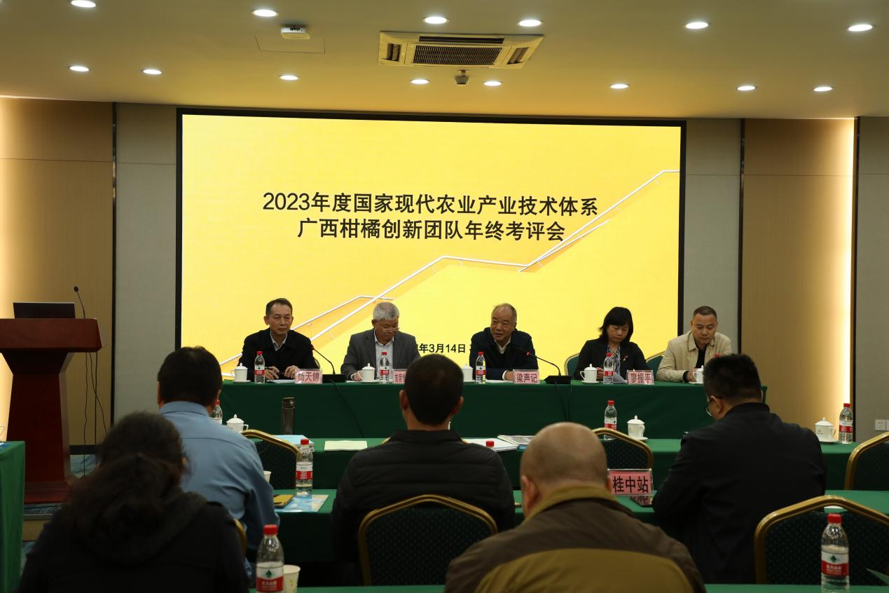 3月14日,国家现代农业产业技术体系广西柑橘创新团队2023年度考评工作会在广西南宁召开,考评专家由自治区水果生产技术指导站、自治区农业技术推广站、广西水产科学研究院和广西桂林鹏宇兄弟柑橘产业开发有限责任公司有关专家、领导组成。自治区成人直播 厅科技教育处有关负责人、广西柑橘创新团队首席专家、采后技术与质量安全岗位专家、栽培与病虫害防治岗位专家和桂林、桂东、桂中、桂南、桂西北5个综合试验站及团队成员共50多人参加会议。会议由首席专家邓崇岭研究员主持。