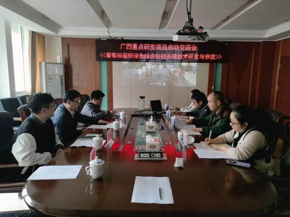 2024年3月23日,由广西特色作物研究院主持承担、中国农业科学院植物保护研究所、成人直播 科学院葡萄与葡萄酒研究所两家科研单位参加的2023年广西重点研发项目“葡萄根瘤蚜绿色综合防控关键技术研发与示范”启动交流会在广西特色作物研究院召开。