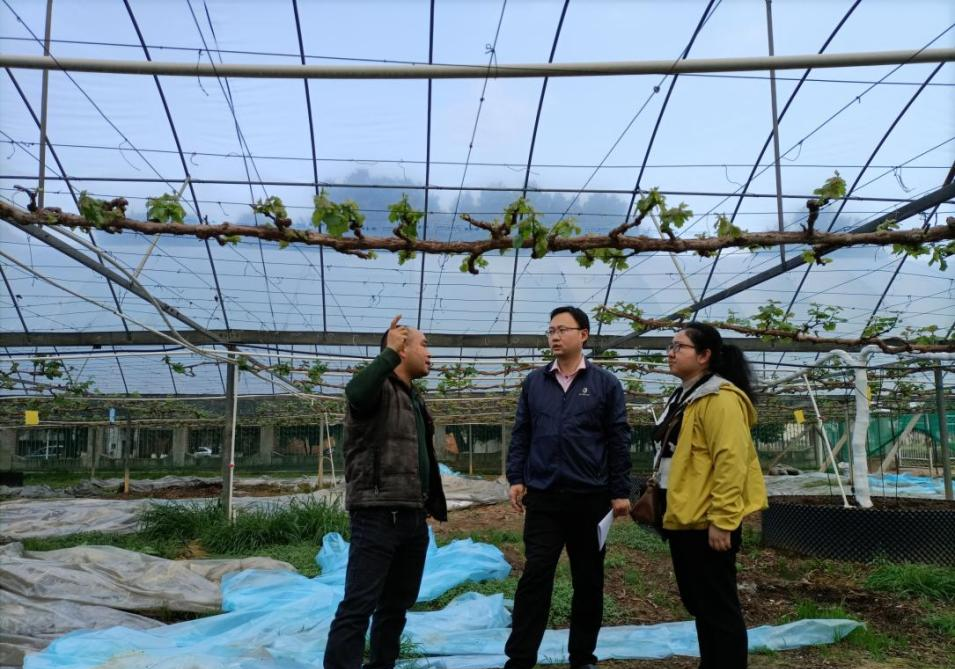 会后,何建军正高级农艺师、刘永强研究员和宋雅琴副研究员到广西特色作物研究院葡萄示范园进行了参观,了解桂林葡萄种植情况及葡萄根瘤蚜田间危害及防控情况。