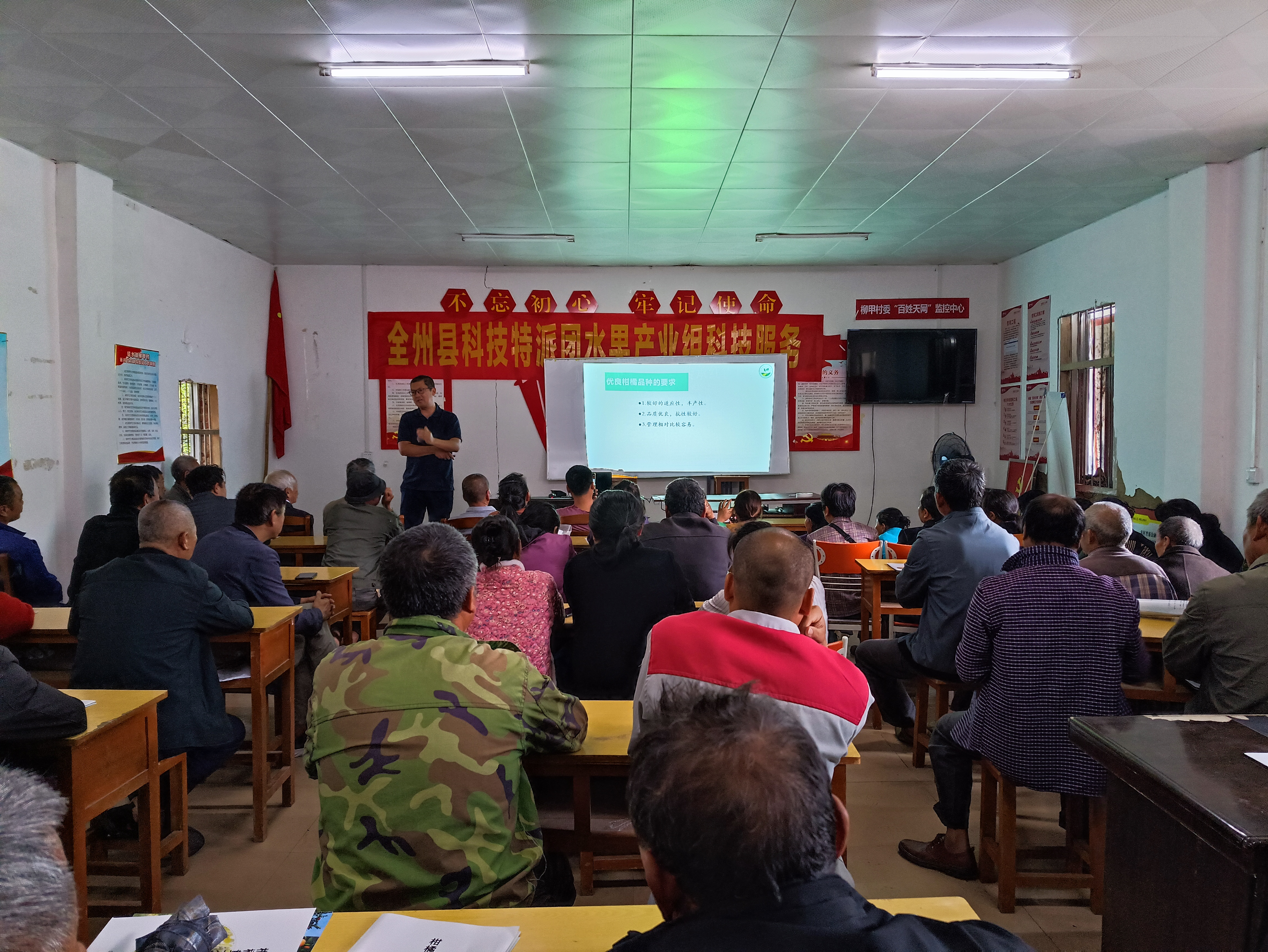 专家组在全州县绍水镇柳甲村委开展了柑橘生产技术、沙糖桔生产关键技术、柑橘黄龙病防控实用技术等专题培训,发放了柑橘优良品种及无病毒苗木繁育、柑橘黄龙病防控技术手册等技术资料160余份,柳甲村委各自然村柑橘种植户60余人参加了此次培训,培训的内容简单明确、结合实际,获得了大家的一致认可。