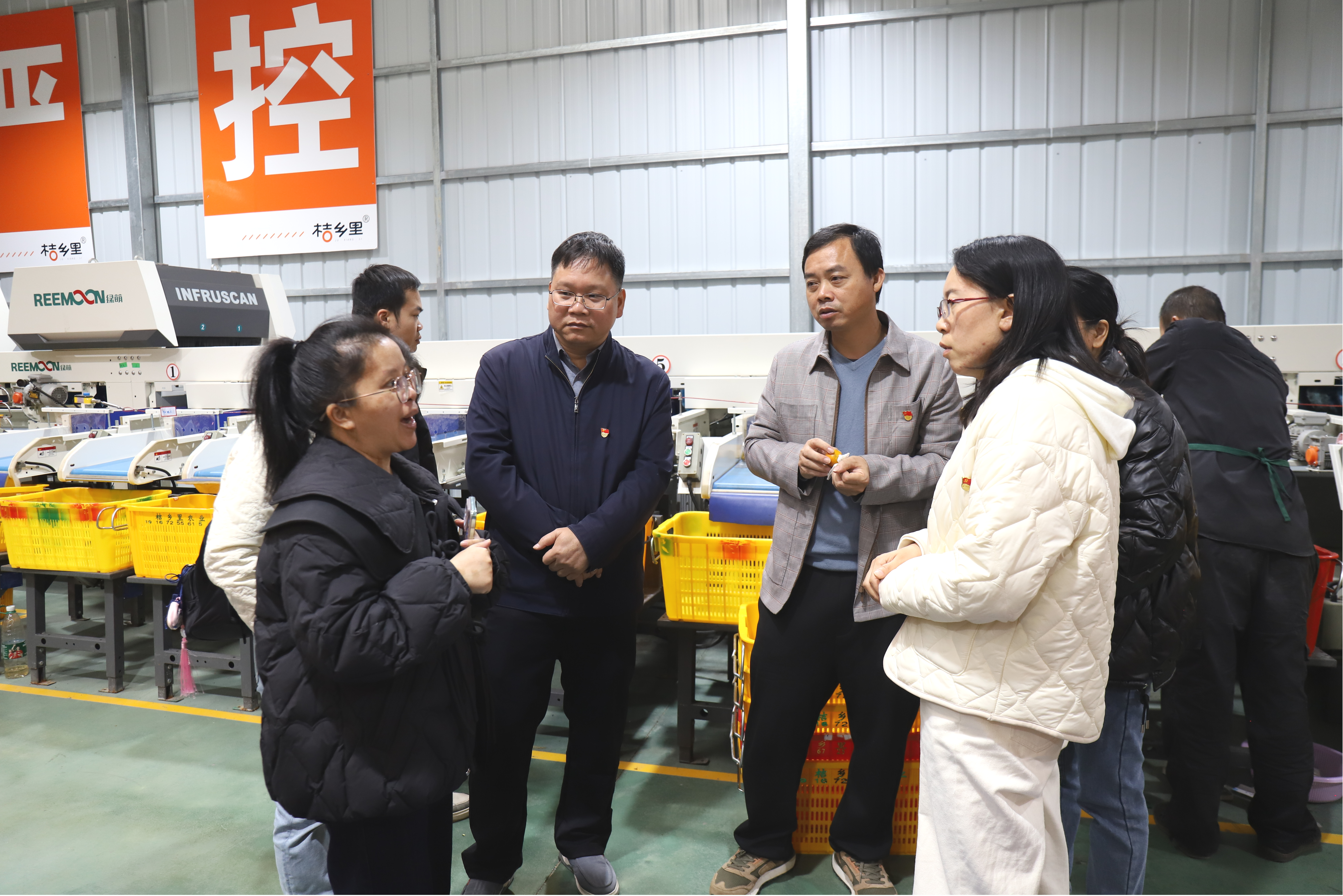 随后,在广西融安爱田农业发展有限公司融安金桔交易中心和广西融安桔乡里农业有限公司桔乡里智能严选仓,广西特色作物研究院党员干部一行与企业有关负责人进行交流学习,详细了解脆蜜金柑的分选、包装和销售情况,学习企业在产品经营和品牌打造等方面的先进经验和做法,并围绕实现脆蜜金柑规模化、标准化和品牌化发展进行深入交流,在助力特色作物产业经济发展上共同着力,为乡村振兴注入产业发展新动能。