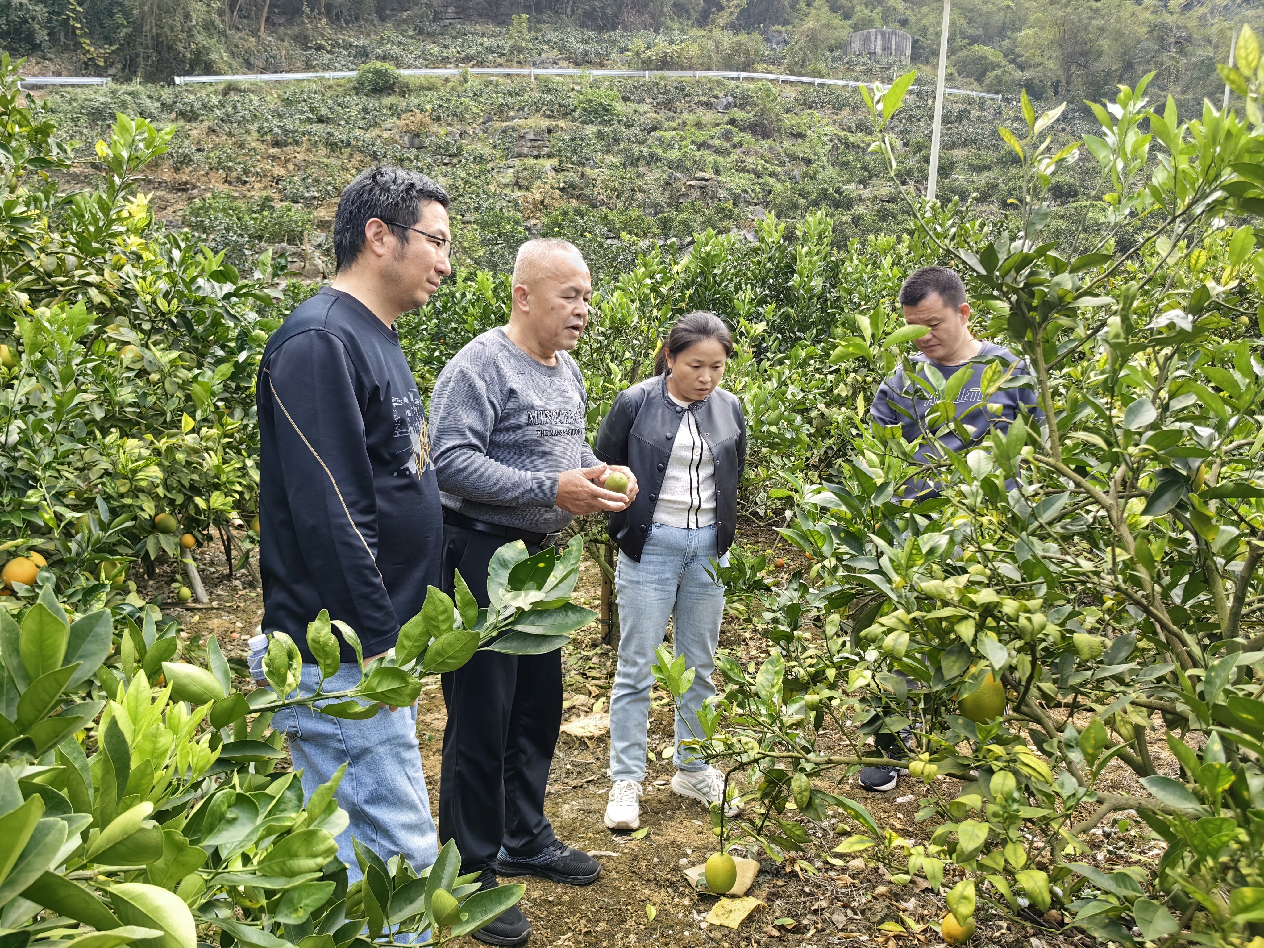 2024年12月3日,广西特色作物研究院柑橘所所长、国家柑橘产业技术体系桂北柑橘综合试验站站长陈传武正高级农艺师,柑桔育种与栽培创新中心常务副主任、广西柑橘创新团队桂林试验站成员梅正敏正高级农艺师,信息所副所长肖远辉正高级农艺师等一行到百色市田阳区五村镇定夜村开展柑橘产业调研并进行技术指导。