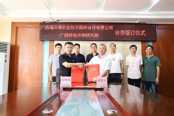 为充分发挥我院科研技术力量优势,推进广西现代特色农业高质量绿色发展。5月31日,广西特色作物研究院与广西福沃得农业技术国际合作有限公司合作签订仪式在我院举行。我院邓崇岭院长、刘升球副院长及相关技术人员参加仪式。