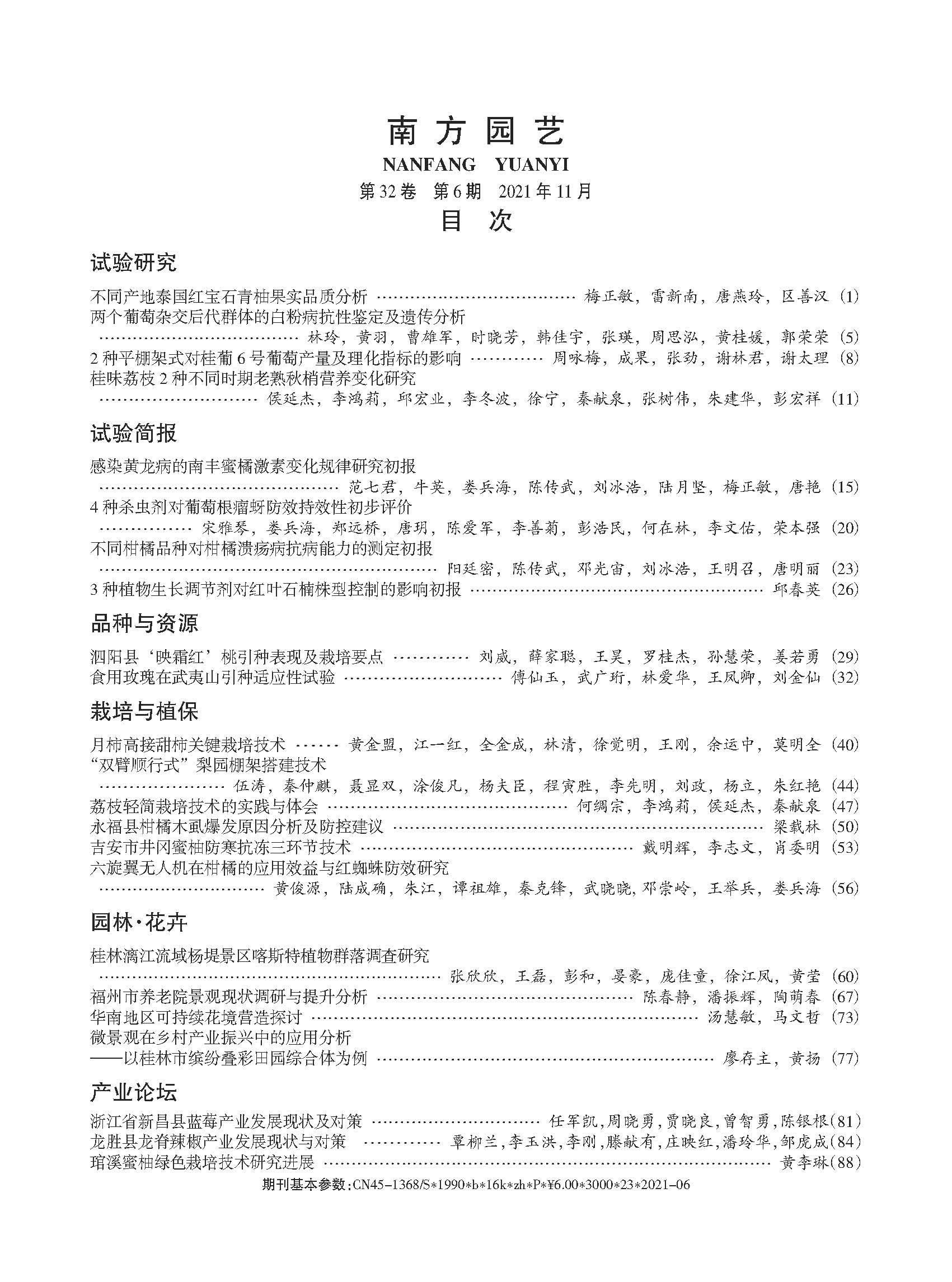 《南方园艺》2021年第6期目录