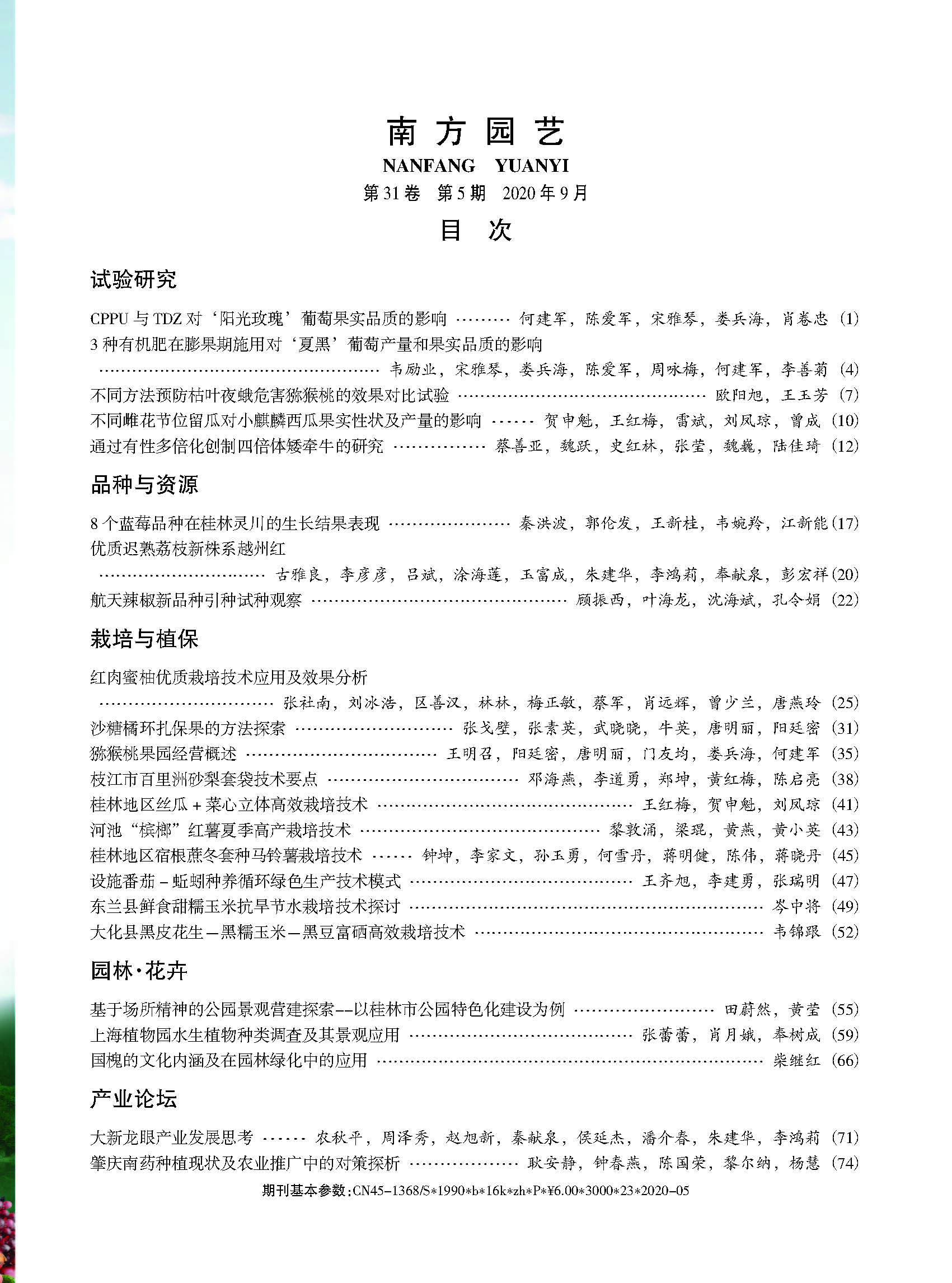 《南方园艺》2020年第5期目录