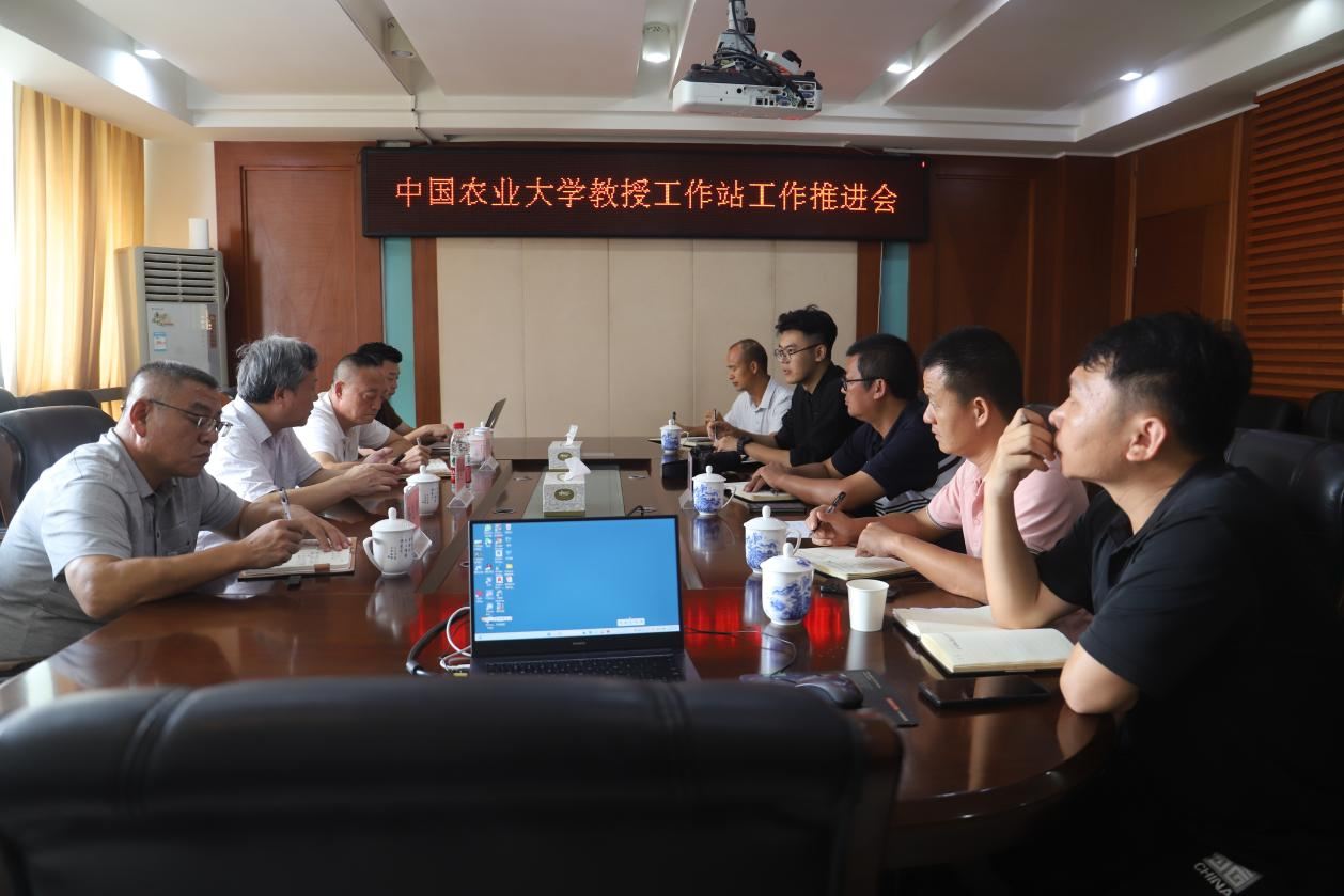 随后,召开中国农业大学教授工作站工作推进会,潘灿平教授、院领导及工作站相关人员参加会议。会议就工作站的具体工作推进情况进行座谈交流,徐志美副院长详细介绍广西柑橘、梨、葡萄等特色果蔬产业发展情况,指出产业高质量发展、农产品质量安全、病虫害绿色生态防控技术是产业发展趋势。我院柑橘、梨、柿、葡萄、蔬菜、中药材团队负责人汇报了纳米硒提质增效试验相关工作进展情况。徐志美、刘升球副院长对工作站的工作给予了充分的肯定,表示由衷希望在潘灿平教授及工作站的带领和指导下,助力广西特色果蔬食品安全和质量提升工作不断创新,加强对我院技术人才培养、促进科研成果服务地方发展,切实服务产业,助力广西特色果蔬产业高质量发展。